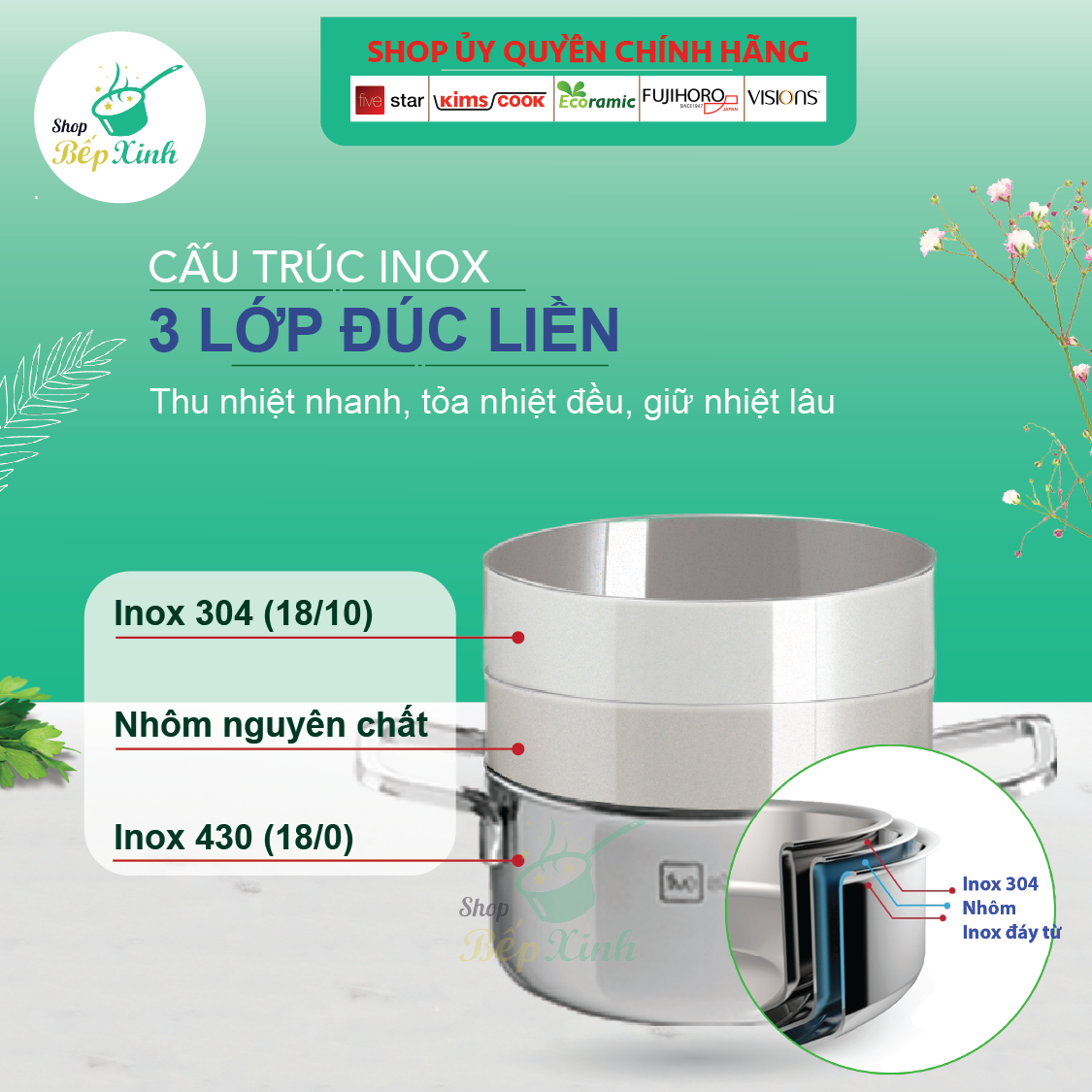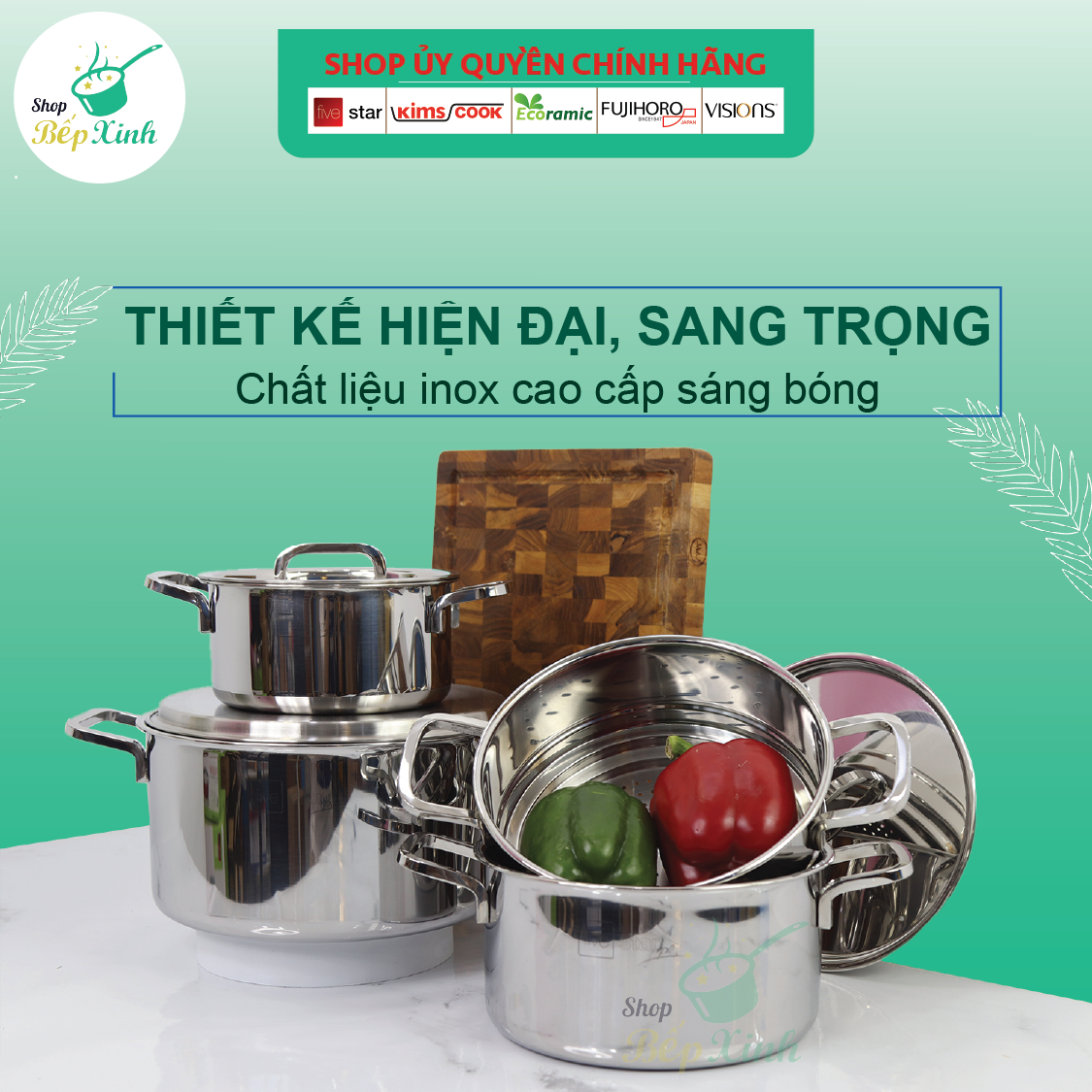 ✨Bộ nồi xửng hấp inox 304 cao cấp Fivestar Plus 3 lớp đúc liền 4 chiếc nắp inox