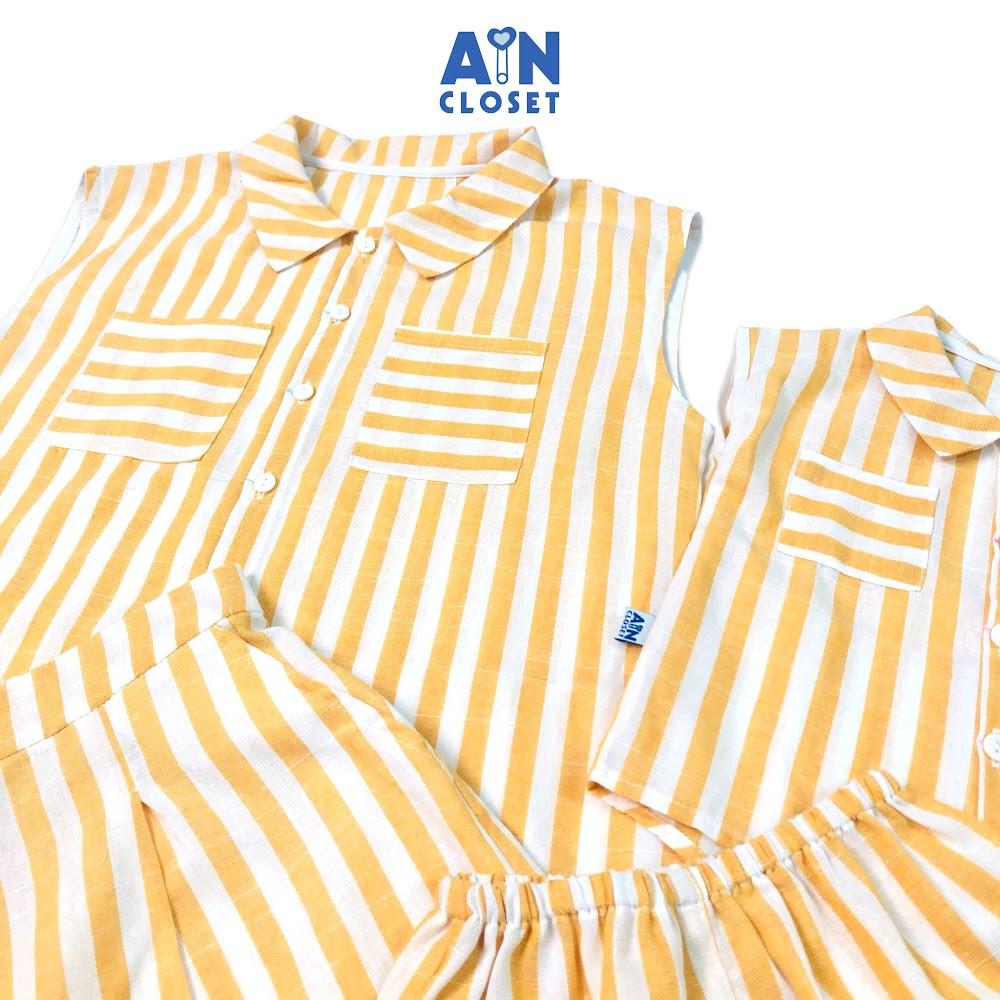 ✨Bộ quần áo ngắn cho mẹ họa tiết Kẻ vàng trắng cổ sơ mi linen cotton - AICDMEXU7K6V - AIN Closet