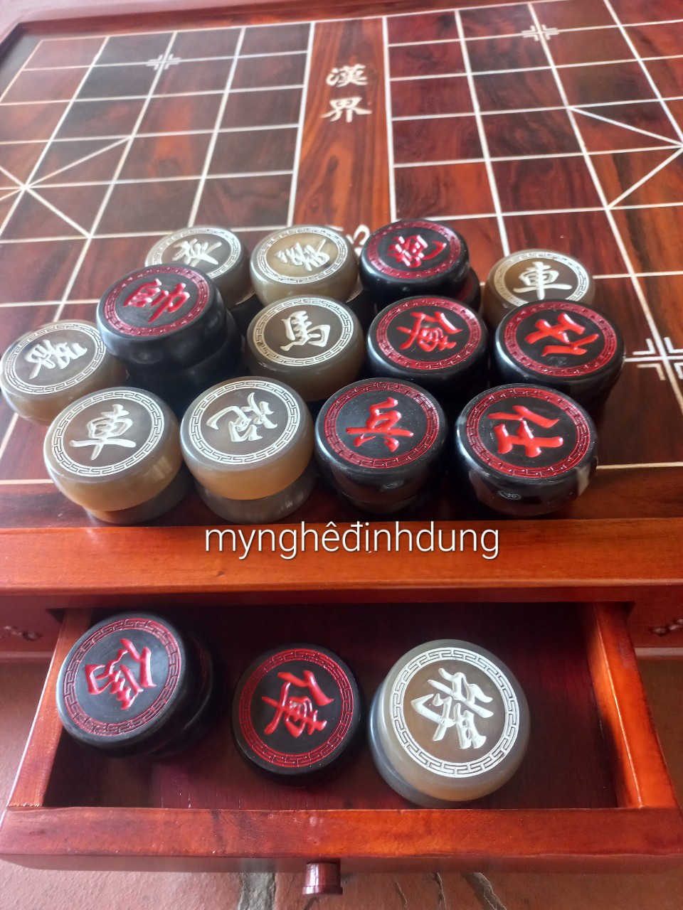 BỘ CỜ TƯỚNG - BÀN CỜ GỖ GÕ ĐỎ CAO CẤP VÀ QUÂN CỜ SỪNG TRÂU NGUYÊN KHỐI - GIÁ XƯỞNG #2300k