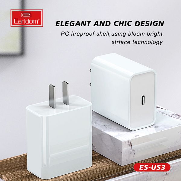 Bộ sạc gắn tường N5 Favor, đầu ra Type-C PD20W + USB QC3.0 18W, phích cắm EU, được đặt với cáp Type-C sang Lightning / Type-C sang Type-C 1. Chất liệu: chất liệu PC chống