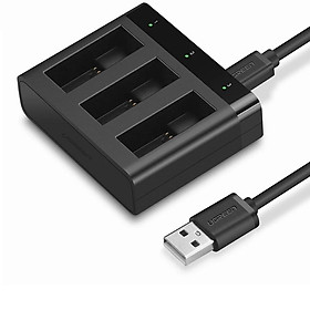 ✨Bộ sạc nhanh 3 pin cho máy quay Go Pro kèm cáp USB mini GoPro màu đen Ugreen 40596 ED005 Hàng chính hãng