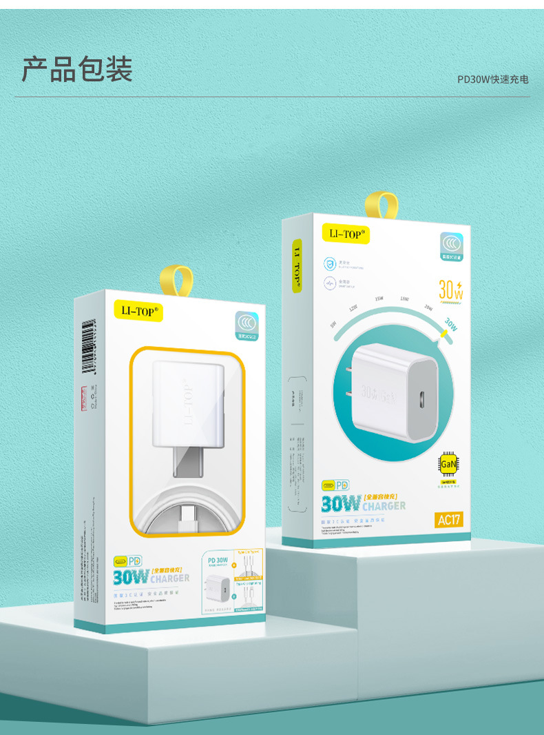 Bộ sạc nhanh LI-TOP GaN AT17 chân Type C công suất PD 30W, có chứng nhận 3C tiêu chuẩn quốc gia, hàng chính hãng, cho dùng thử 30 ngày hoàn trả