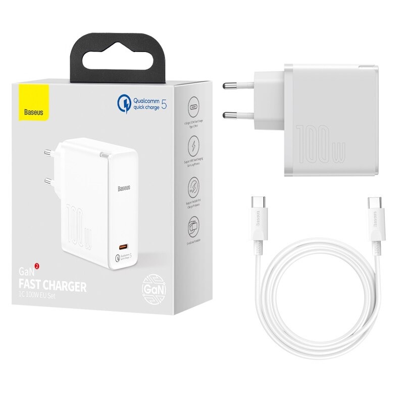 Giới thiệu sản phẩm Cốc sạc siêu nhanh Baseus GaN2 Fast Charger 1C 100W (GaN2 Technology, QC5.0/QC4.0/PD3.0/ PPS Multi Quick Charge Protocol Support)Là bộ sạc nhanh sử dụng công nghệ vật liệu bán dẫn thế