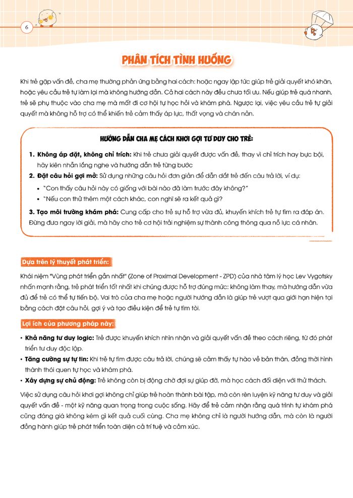 - Thúc đẩy tư duy độc lập của trẻ: Thay vì áp đặt, bộ sách hướng dẫn cách đặt câu hỏi để trẻ tự suy nghĩ và rút ra bài học.