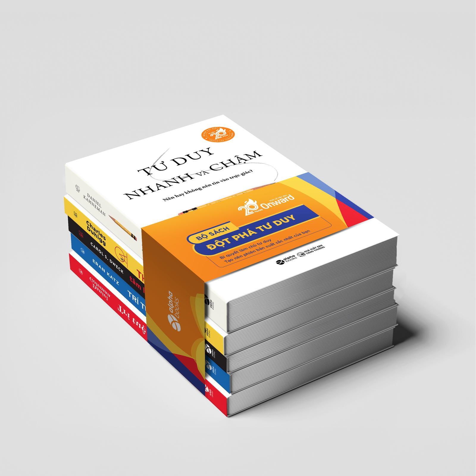 Mua tại TiktokBộ Sách Đột Phá Tư Duy - Kỷ Niệm 20 Năm Onward (Bộ 5 Cuốn) Bí quyết làm chủ tư duy Tạo nên phiên bản xuất sắc nhất của bạn 1.Trí Tuệ Xúc Cảm Ai cũng biết điểm IQ cao chưa chắc đã đảm bảo cho một cuộc đời thành công, hạnh phúc và đức hạnh. Nhưng chỉ đến khi đọc Trí Tuệ Xúc Cảm (Emotional Intelligence) của Daniel Goleman, chúng ta mới có thể lý giải tại sao. Dựa trên những quan sát và nghiên cứu nhiều năm trong lĩnh vực tâm lý và khoa học thần kinh, tác giả đã mang đến một cái nhìn mới mẻ về hai loại trí tuệ bên trong mỗi con người - lý trí và cảm xúc - cùng cách mà chúng định hình số phận của chúng ta. Trong sách, Daniel Goleman chỉ ra một số yếu tố khiến người IQ cao có thể gặp lúng túng trong công việc, còn người IQ thấp hơn lại đạt hiệu suất đáng kinh ngạc. Đó là sự tự ý thức, tính kỷ luật tự giác, sự đồng cảm, ... và chúng không bị mặc định từ khi sinh ra. Trí tuệ cảm xúc được bồi đắp bởi những trải nghiệm từ khi còn nhỏ, nhưng nó cũng có thể được nuôi dưỡng và tăng cường trong quá trình mỗi cá nhân trưởng thành, đem đến lợi ích cho sức khỏe, công việc và cả các mối quan hệ của họ. 2.Trí Tuệ Do Thái Trí tuệ Do Thái là một cuốn sách tư duy đầy tham vọng trong việc nâng cao khả năng tự học tập, ghi nhớ và phân tích - những điều đã khiến người Do Thái vượt trội lên, chiếm lĩnh những vị trí quan trọng trong ngành truyền thông, ngân hàng và những giải thưởng sáng tạo trên thế giới. Tuy là một cuốn sách nhỏ nhưng Trí Tuệ Do Thái lại mang trong mình tri thức về một dân tộc có thể nhỏ về số lượng nhưng vĩ đại về trí tuệ và tài năng. Cuốn sách không chỉ lý giải lý do vì sao những người Do Thái trên thế giới lại thông minh và giàu có, mà còn đặc tả con đường thành công của một người Do Thái - Jerome cùng những triết lý được đúc kết đầy giá trị. Trí Tuệ Do Thái không dừng lại ở giới hạn của một cuốn sách triết lý hay kỹ năng. Thông qua Jerome, một kẻ lông bông thích la cà, tác giả đưa người đọc vào một chuyến khám phá về trí tuệ của người Do Thái, từ đó khơi ra những giới hạn để người đọc có thể tự khai phá trí tuệ bản thân với "Năm nguyên tắc" và "Mười lăm gợi ý". Đây sẽ là những bài học quý giá dành cho những ai muốn tồn tại và phát triển mạnh mẽ, không chỉ với con đường thành công của riêng mình. 3.Tâm Lý Học Thành Công Cuốn sách sẽ cho bạn thấy không chỉ khả năng và tài trí mới mang lại thành công cho chúng ta, mà phần lớn do cách tiếp cận mục tiêu bằng lối tư duy nào. Việc tán dương trí thông minh và khả năng của con bạn không hề nuôi dưỡng lòng tự trọng và dẫn đến thành tựu, mà thậm chí còn phương hại đến thành công sau này. Với tư duy đứng đắn, chúng ta có thể tạo động lực cho con cái và giúp chúng phát triển trong trường học, cũng như đạt được mục tiêu của bản thân trong cuộc sống và sự nghiệp. Dweck đã giúp tất cả các bậc cha mẹ, giáo viên, CEO và vận động viên thấy một ý tưởng đơn giản về não bộ có thể tạo ra tình yêu học tập và sự kiên trì – cơ sở cho những thành tựu vĩ đại ở mọi lĩnh vực. 4.Sức Mạnh Của Thói Quen “Một thăm dò thú vụ về những thói quen bệnh hoạn của chúng ta – chúng ta hút thuốc, chúng ta không ngừng kiểm tra điện thoại, liên tục chọn lựa người tình tồi, chúng ta thường xuyên (hoặc không bao giờ) thu dọn phòng ốc. Duhigg đào sâu vào tìm ra nguyên do tại sao chúng ta làm như vậy, và chúng ta có thể thay đổi chúng ra sao, với cả cá nhân và tổ chức” – The Daily “Cuốn sách của Charles Duhigg đầy sức mạnh trong chính sự giản dị của nó: đối đầu với những yếu tố gốc rễ trong hành vi con người, chấp nhận chúng như những căn bệnh thâm căn cố đế, rồi sau đó hướng người đọc tới khát khao đổi thay. Cái nhìn của anh thật sâu sắc, hữu ích và cũng đầy khiêu khích” – Jim Collins, tác giả những cuốn sách kinh doanh Good to Great (Từ tốt đến vĩ đại) và Built to Last (Xây dựng để trường tồn) bán chạy nhất thế giới. 5.Tư Duy Nhanh Và Chậm Chúng ta thường tự cho rằng con người là sinh vật có lý trí mạnh mẽ, khi quyết định hay đánh giá vấn đề luôn kĩ lưỡng và lý tính. Nhưng sự thật là, dù bạn có cẩn trọng tới mức nào, thì trong cuộc sống hàng ngày hay trong vấn đề liên quan đến kinh tế, bạn vẫn có những quyết định dựa trên cảm tính chủ quan của mình. “Tư duy nhanh và chậm”, cuốn sách nổi tiếng tổng hợp tất cả nghiên cứu được tiến hành qua nhiều thập kỷ của nhà tâm lý học từng đạt giải Nobel Kinh tế Daniel Kahneman sẽ cho bạn thấy những sư hợp lý và phi lý trong tư duy của chính bạn. Cuốn sách được đánh giá là “kiệt tác” trong việc thay đổi hành vi của con người, Tư duy nhanh và chậm đã dành được vô số giải thưởng danh giá, lọt vào Top 11 cuốn sách kinh doanh hấp d