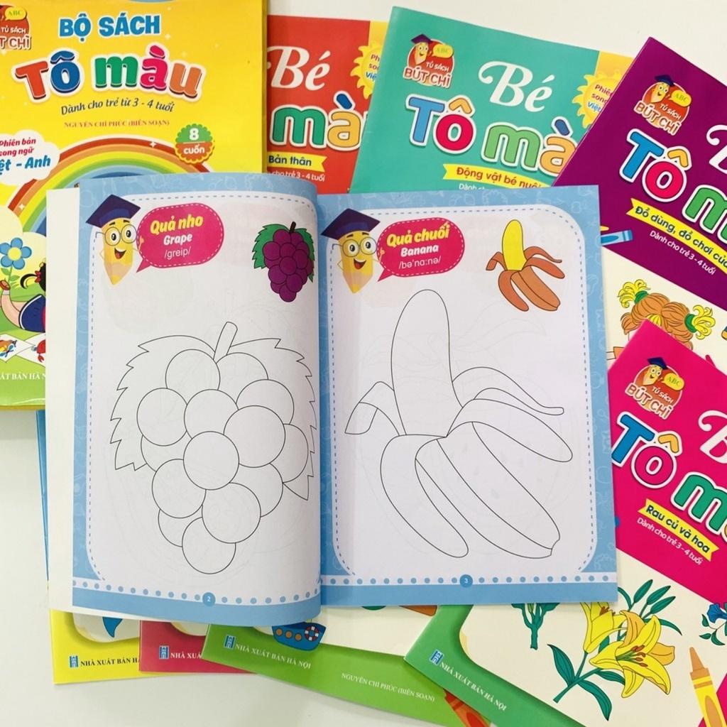 Bộ Sách Tô Màu Nhiều Chủ Đề Song Ngữ Anh -Việt Cho Trẻ Em 3 - 4 Tuổi (Túi 8 Cuốn)