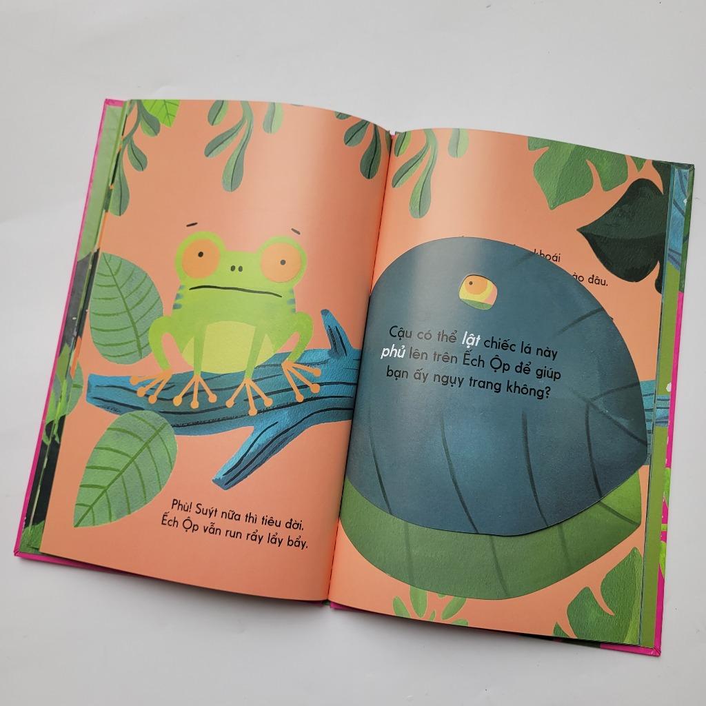 Bộ sách tương tác với nhiều chi tiết lật mở vui nhộn và các lời mời vỗ tay, gõ, chạm để khiến việc đọc sách của các bạn nhỏ 2 tuổi trở nên thú vị hơn muôn phần! Trong mỗi cuốn sách, trẻ sẽ được gặp một nhân vật đáng yêu - Cú Nâu, Ếch Ộp hay Cua Con. Thật nhiều những chi tiết thú vị để ba mẹ và bé lật mở trong các cuốn sách, cùng vô số hành động tương tác vui nhộn cùng các nhân vật sẽ đưa bé bước vào thế giới muôn màu muôn vẻ bên trong câu chuyện!