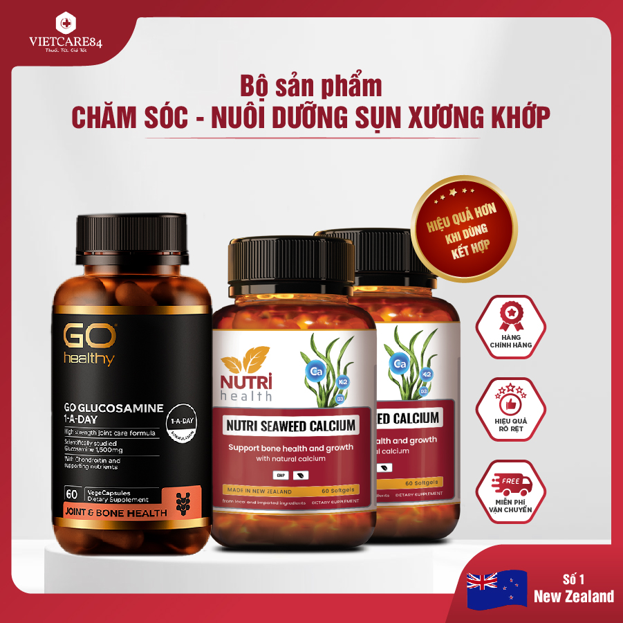 ✨Bộ sản phẩm chăm sóc xương khớp: Viên Xương Khớp GO GLUCOSAMINE 1-A-DAY ; 2 Canxi hữu cơ New Zealand Nutri Seaweed Calcium