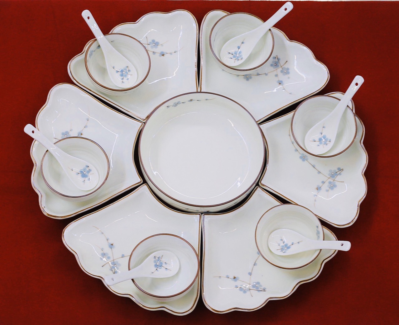 Đúng như tên gọi của bộ đồ sứ bàn khách Triêu Xuân mang tới một vẻ đẹp mới mẻ, tinh khôi vào những ngày đầu xuân năm mới. Với mong ước một năm mới mọi