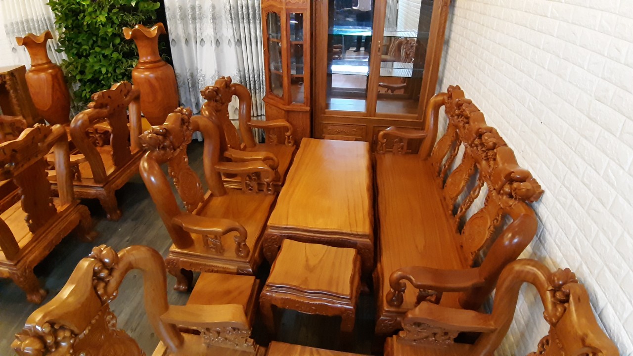 Có gì đặc biệt trên bộ bàn ghế phòng khách gỗ Hương đá giá 18,5 triệu tại @đồ gỗ Quang Định.