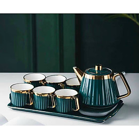 Chén trà ngon bộ ấm chén men xanh khay tròn viền vàng