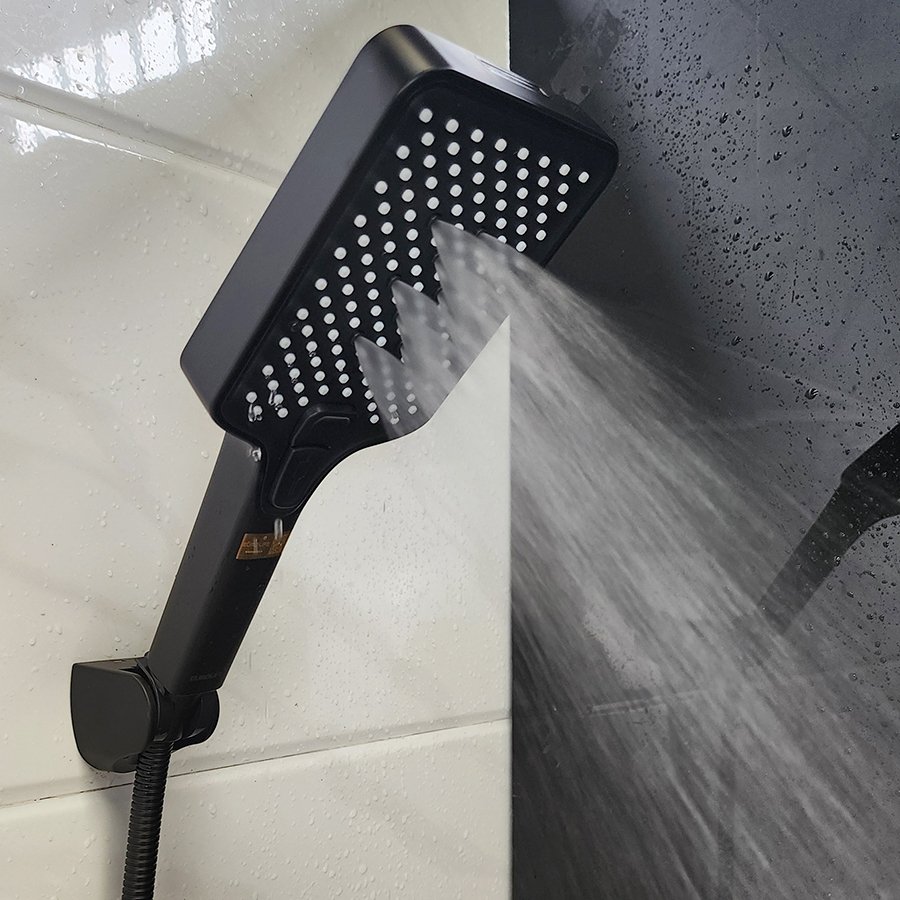 Chất liệu Nhưa ABS mạ màu đen, có thể điều chỉnh hướng dòng chảy của tay sen ( gật gù)