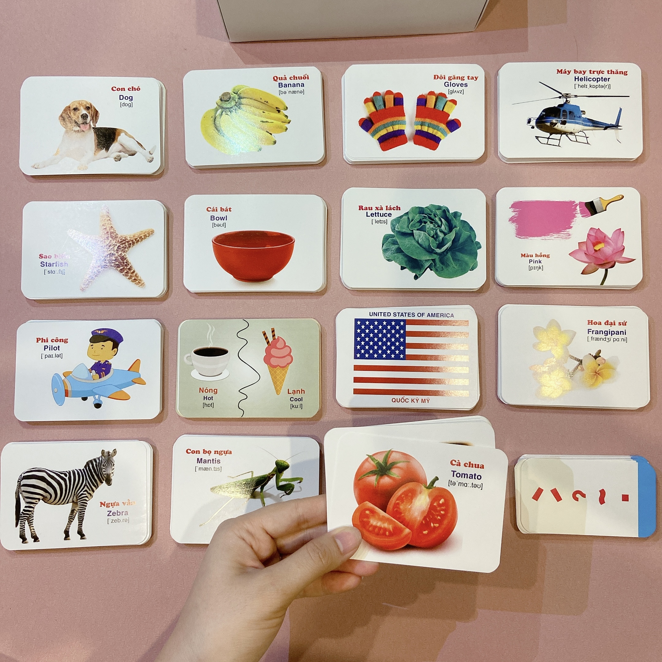 Flashcard thẻ học thông minh cho bé từ 0 – 6 tuổi được thiết kế bởi những chuyên gia giáo dục hàng đầu theo phương pháp Montessori. Bộ thẻ học Flashcard song ngữ tiếng anh