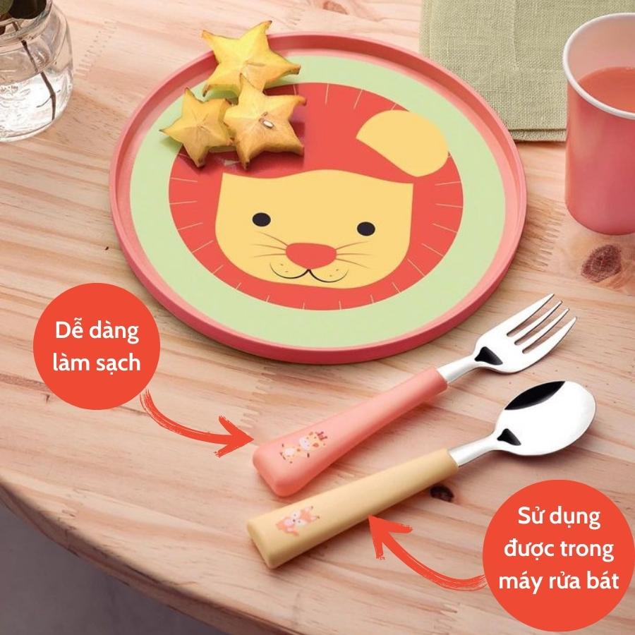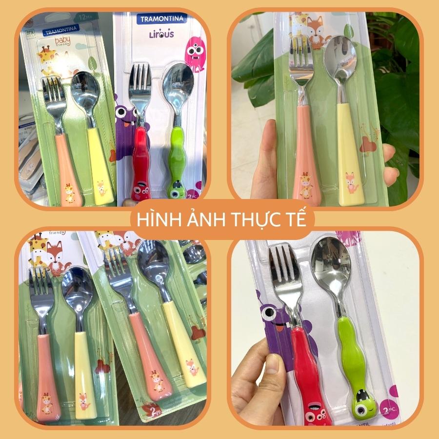 Bộ Thìa Dĩa Trẻ Em 2 Món Tramontina Chất Thép Không Gỉ Cao Cấp An Toàn Cán Nhựa PP Màu Vàng Cam Sản Xuất Tại Brazil Tặng Kèm 1 Dụng Cụ Tách Lòng Trứng