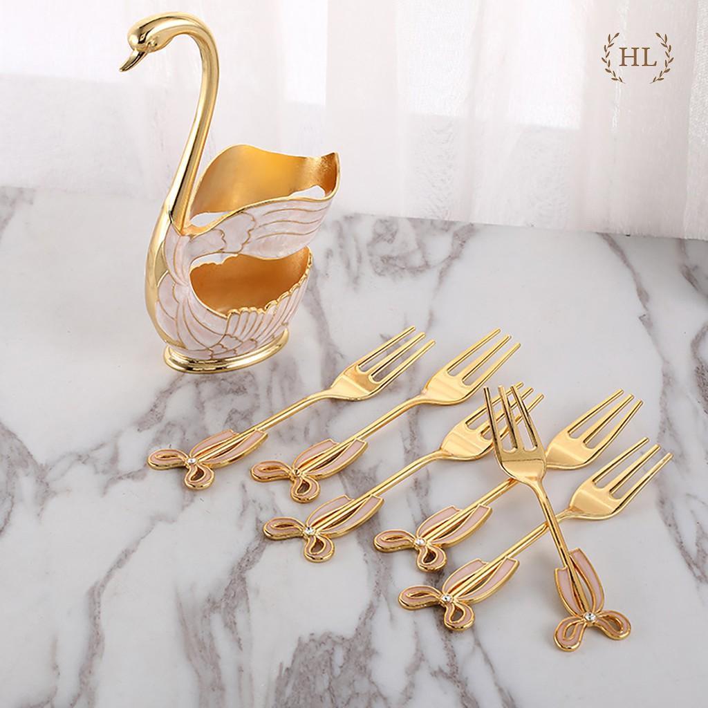 Sản phẩm bao gồm 1 thiên nga đính 2 viên đá Sawaski + 6 thìa hoặc nĩa Chất liệu: Hợp kim Bảo hành màu: 5 năm An toàn sức khỏe