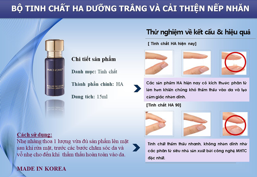 Mô tả Tinh Chất Dưỡng Trắng Và Cải Thiện Nếp Nhăn Parcimonie Hyaluronic Acid 90 Soothing Booster, đây được xem là dòng tinh chất chứa giàu thành thành phần Hyaluronic Acid nhất trên thị trường
