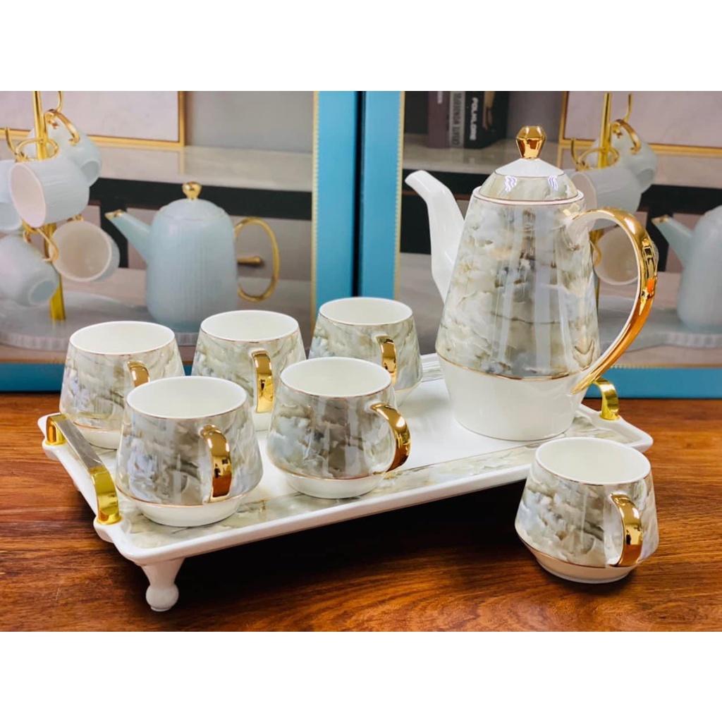 ✨Bộ trà ấm chén sứ vân đá phong cách Châu Âu cao cấp quà tặng ý nghĩa