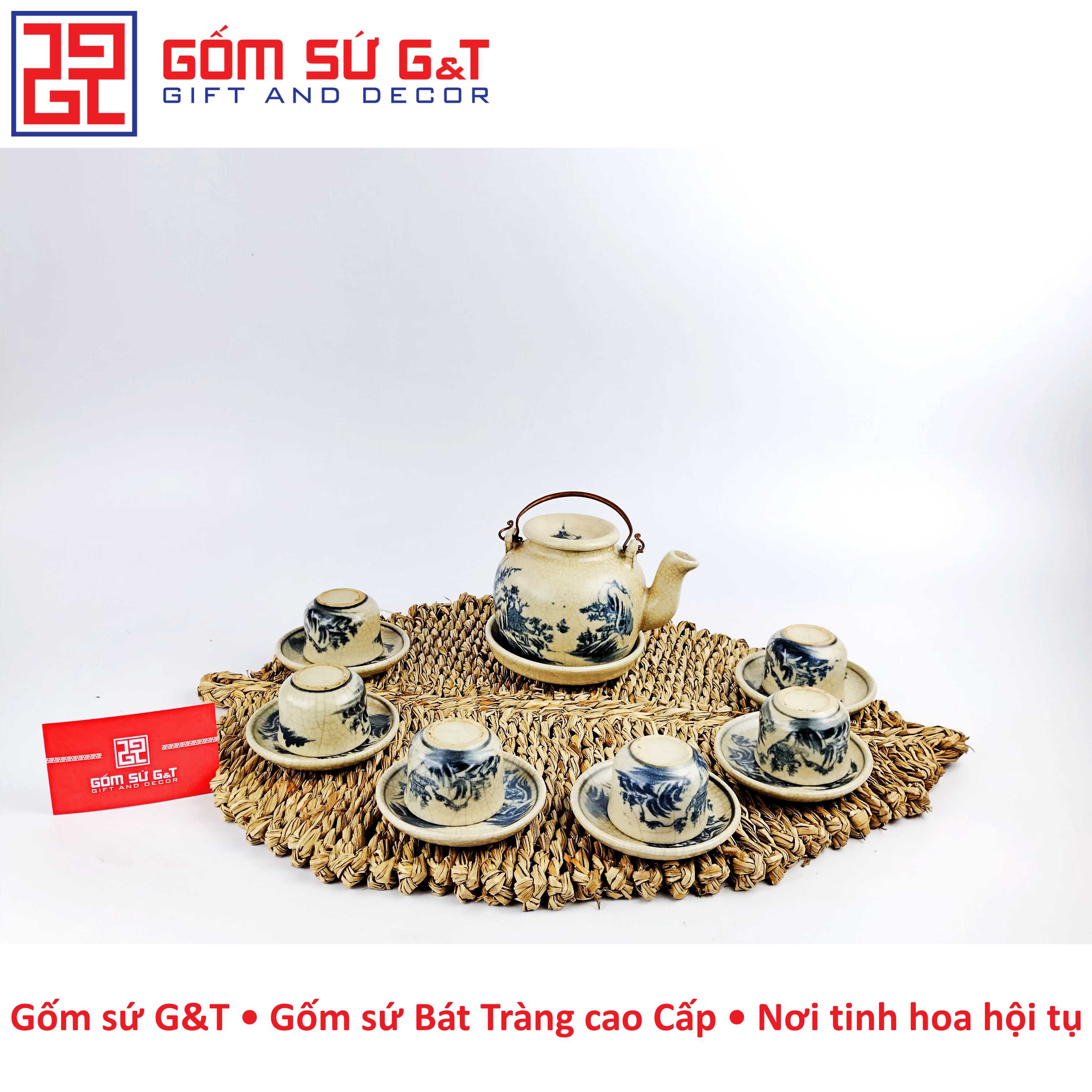 Điểm nổi bật của Bộ trà men rạn sơn thủy dáng lõm là lớp men rạn giả cổ được tráng lên bề mặt sản phẩm. Kỹ thuật men rạn tạo nên những vệt rạn mềm mại và uốn lượn trên bề mặt, tạo ra hiệu ứng độc đáo và tinh tế. Nhìn vào bộ ấm chén, bạn sẽ cảm nhận được những vệt rạn đan xen, mang đến cảm giác như thời gian đã để lại dấu ấn trên sản phẩm. Sự kết hợp này giúp tô điểm cho bộ ấm chén men rạn giả cổ Bát Tràng một nét đẹp truyền thống và phong cách cổ điển, đồng thời tạo nên vẻ đẹp độc đáo không thể nhầm lẫn với bất kỳ sản phẩm nào khác.