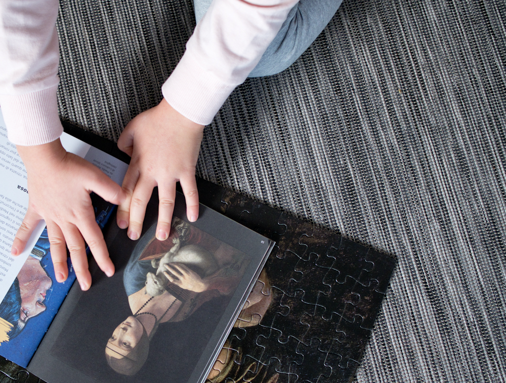 Mua tại TiktokItalian Renaissance genius Leonardo da Vinci is remembered for his creativity and skill in so many different areas. As a painter, sculptor, inventor and engineer, he left a great legacy with his inventions, innovations and artwork. Read a 32-page book about his life and work, then assemble the puzzle of the most famous painting in the world: Leonardo da Vinci's Mona Lisa.