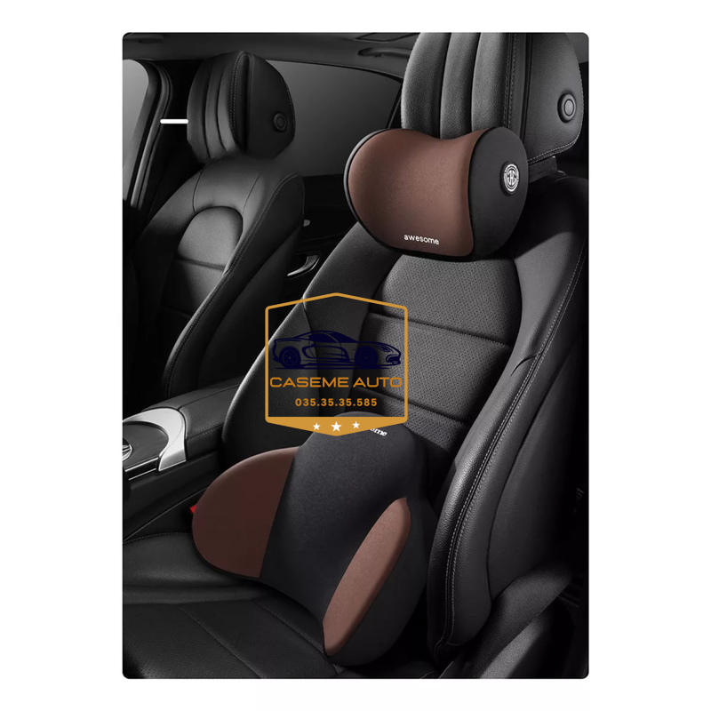 Gối tựa ô tô awesome, lõi cao su non vỏ vải co giãn, gối đầu ô tô, tựa lưng ô tô