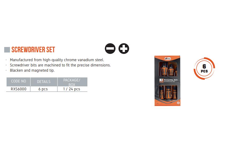Bộ tua vít 6 chi tiết chuyên nghiệp Retta RXS6000 Thổ Nhĩ Kỳ