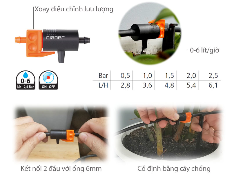 ✨Bộ Tưới Cây Nhỏ Giọt DRIPKIT10TC Claber Sản Xuất tại Ý,10 đầu tưới nhỏ giọt điều chỉnh được lưu lượng 0-6l/giờ