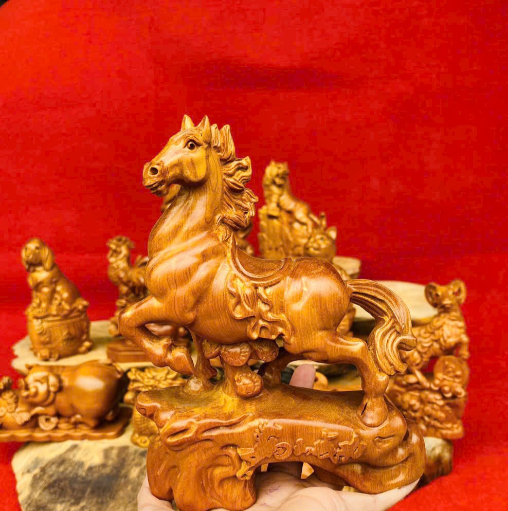✨Bộ tượng 12 còn giáp phong thủy bằng gỗ bách xanh thơm nức cao 20cm