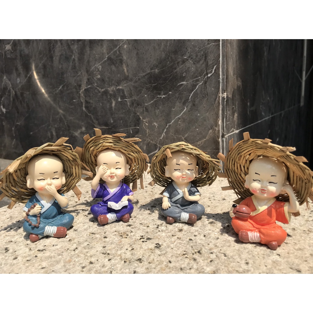 Mua tại TiktokBộ Tượng 4 Chú Tiểu Trang Trí Tiểu Cảnh, Bàn Làm Việc, Taplo Xe Oto