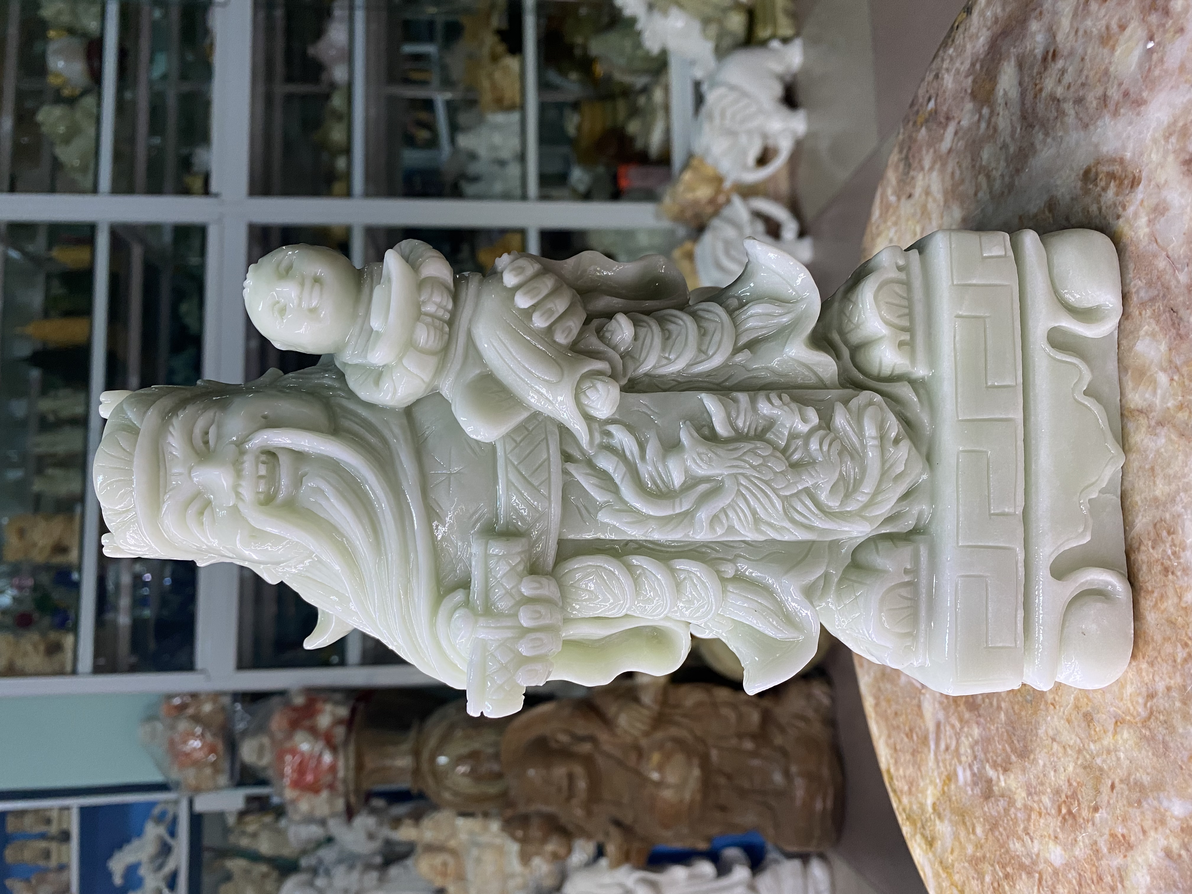 ✨Bộ Tượng Tam Đa (Phúc Lộc Thọ) Đá Cẩm Thạch Trắng Xanh - cao 25cm