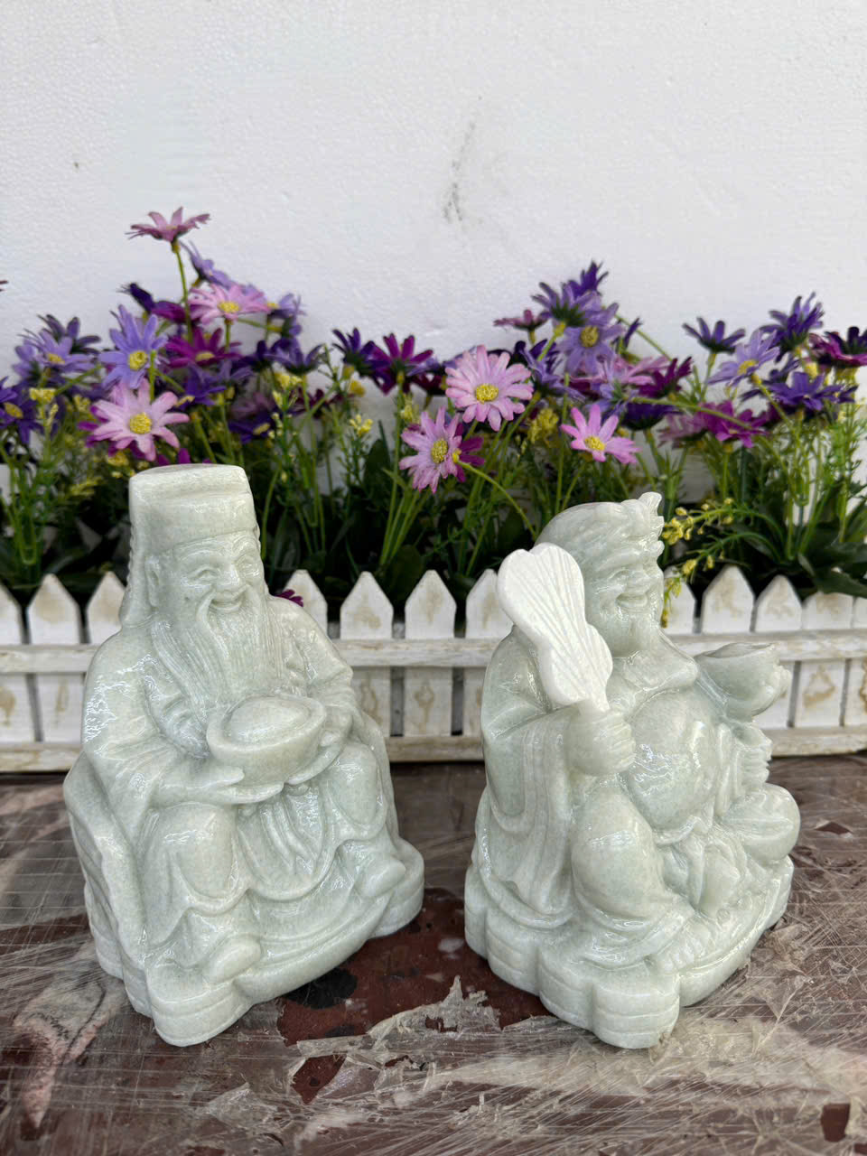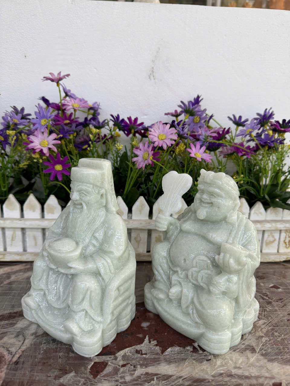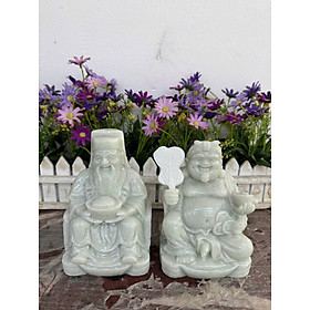 ✨Bộ tượng thờ hai ông Tài Địa Thần Tài Thổ Địa đá cẩm thạch trắng xanh - Cao 15 cm