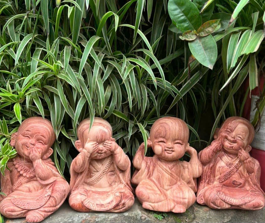 Bộ tượng tứ không gỗ bách xanh - không nhìn - không nói - không nghe -không làm điều xấu