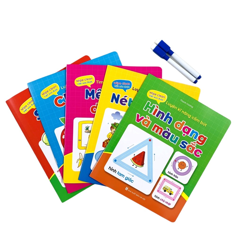 Bộ Vở Viết Xóa Được - Wipe Clean: luyện viết không sợ sai ( bộ 5 cuốn) - tặng kèm 2 bút