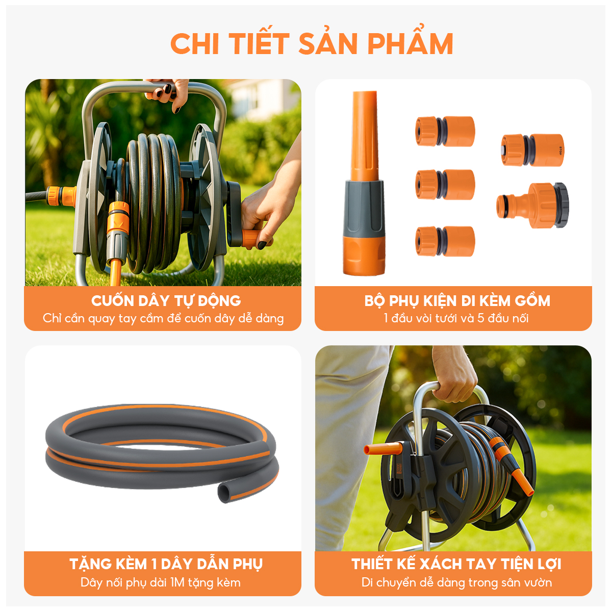 - Mỗi lần tưới cây hay lấy ống tưới ra để xịt rửa sân vườn là cả một quá trình tốn công tốn sức, việc đó làm cho bạn chẳng muốn dọn dẹp hay chăm