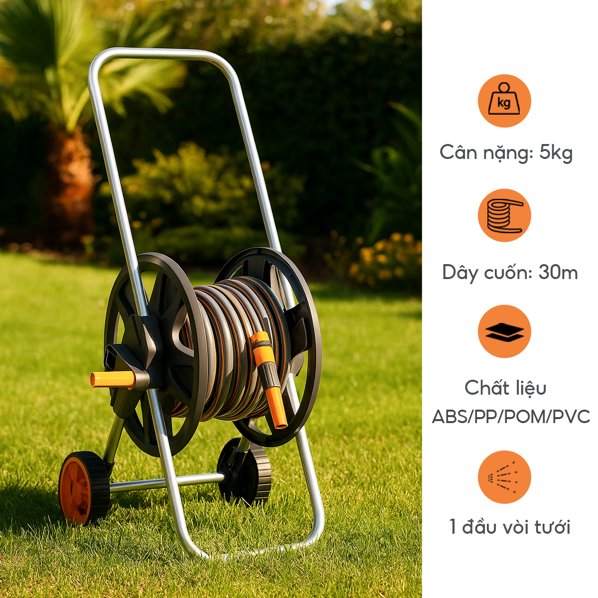 - Bộ vòi nước tưới cây LBLB3365 Dây cuộn trợ năng 30m + 1m dây phụ giúp tưới nước, rửa xe hoặc vệ sinh diện tích rộng mà không phải di chuyển nguồn nước nhiều lần