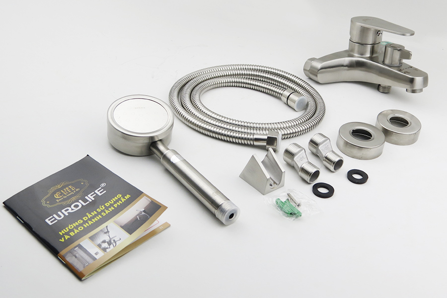 - Bộ sản phẩm được đóng gói trong túi vải cotton, hộp màu riêng của Eurolife. Bộ sản phẩm đầy đủ bao gồm : Thân củ sen, 2 chân quỳ ngoài, 2 roong cao su, 2 nắp che, 1 dây sen 150cm, 1 tay sen 5 chế độ chảy, 1 bát gật gù cài tay sen, 1 phiếu bảo hành chính hãng. THÔNG SỐ KỸ THUẬT Sản phẩm chất lượng cao, mang đến sự sang trọng và đẳng cấp cho phòng tắm vệ sinh. CHẤT LƯỢNG HÀNG ĐẦU Thương hiệu Eurolife Việt Nam là một thương hiệu uy tín hàng đầu trên thị trường Việt Nam với 12 năm kinh nghiệm Các sản phẩm Eurolife đạt nhiều chứng chỉ uy tín trong nước như :
