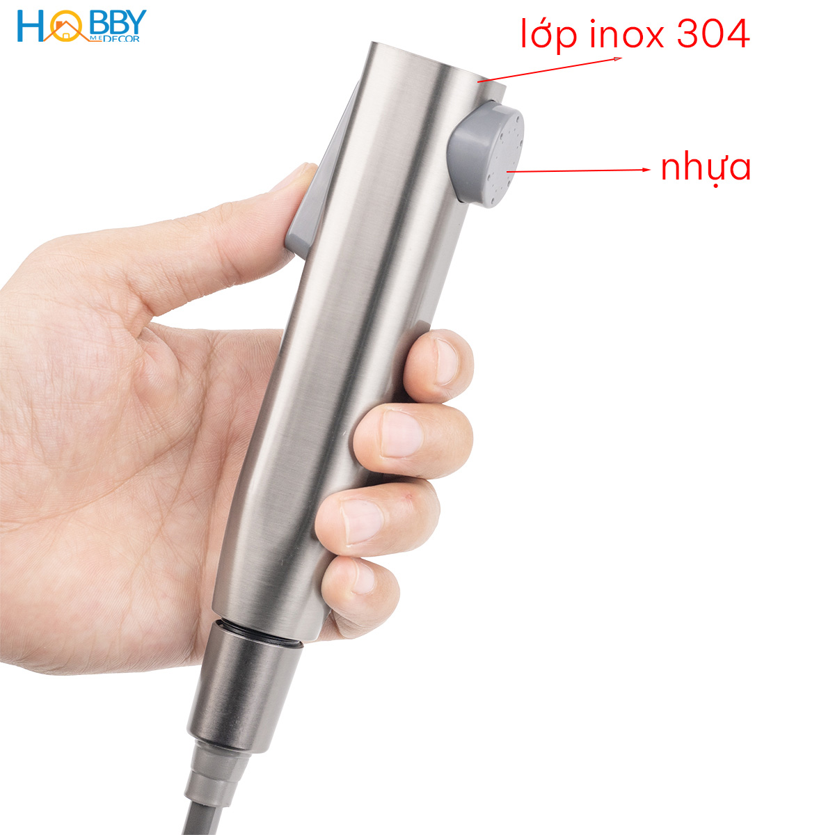 Bộ vòi xịt rửa toilet có van đa năng dây lò xo Hobby home decor VSR9 Thông tin kỹ thuật - Van 2 trong 1 inox 304 sơn xám - Dây lò xo dài