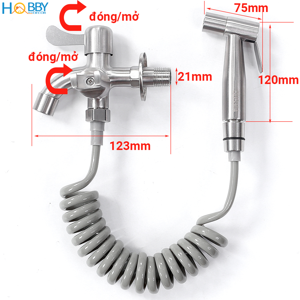 ✨Bộ vòi xịt vệ sinh kèm vòi xả inox 304 dây lò xo Hobby Home Decor GXLX