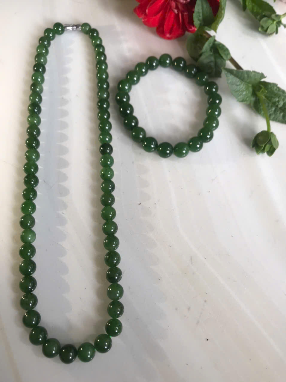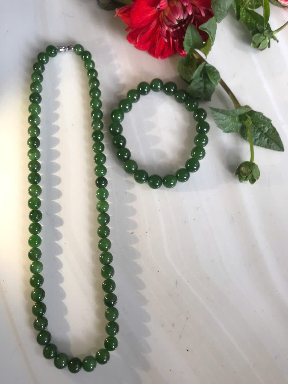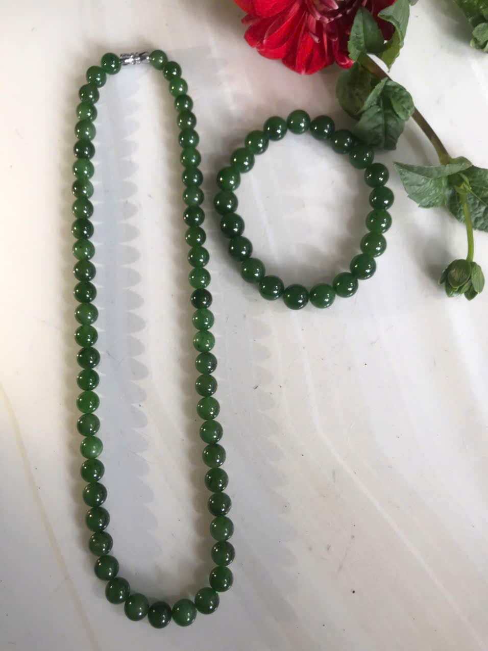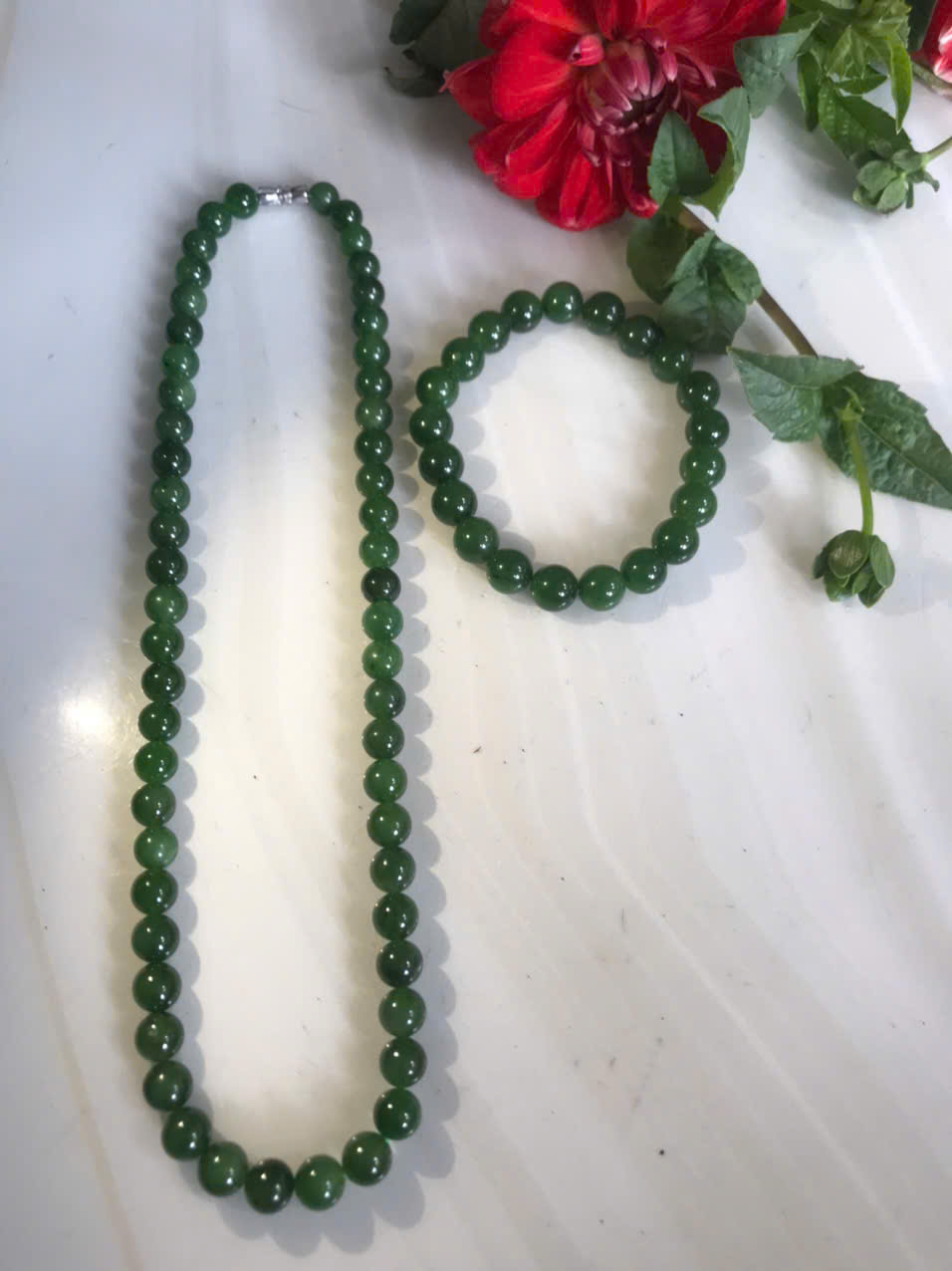 Bộ Vòng Chuỗi Đeo Cổ 8li Và Vòng Tay 9li5 Đá Ngọc Phật Xanh tự nhiên đẹp hay ngọc bích Màu xanh ngọc bích bóng đẹp món quà tặng Mẹ tặng cho mình và người thân nữ đeo đẹp ý nghĩa ạ