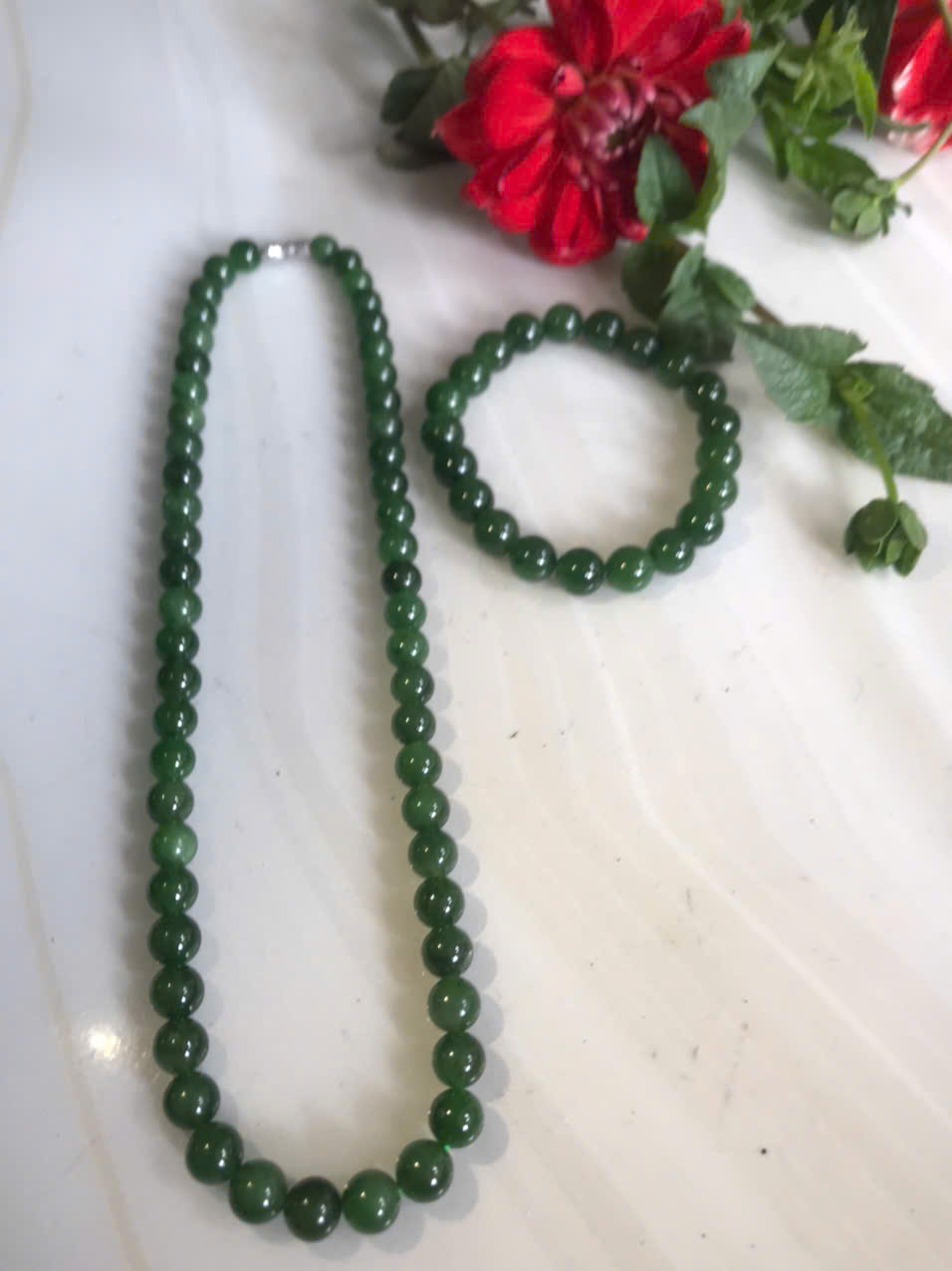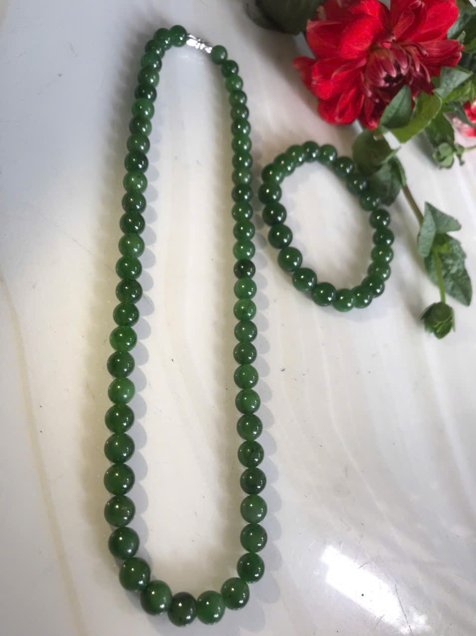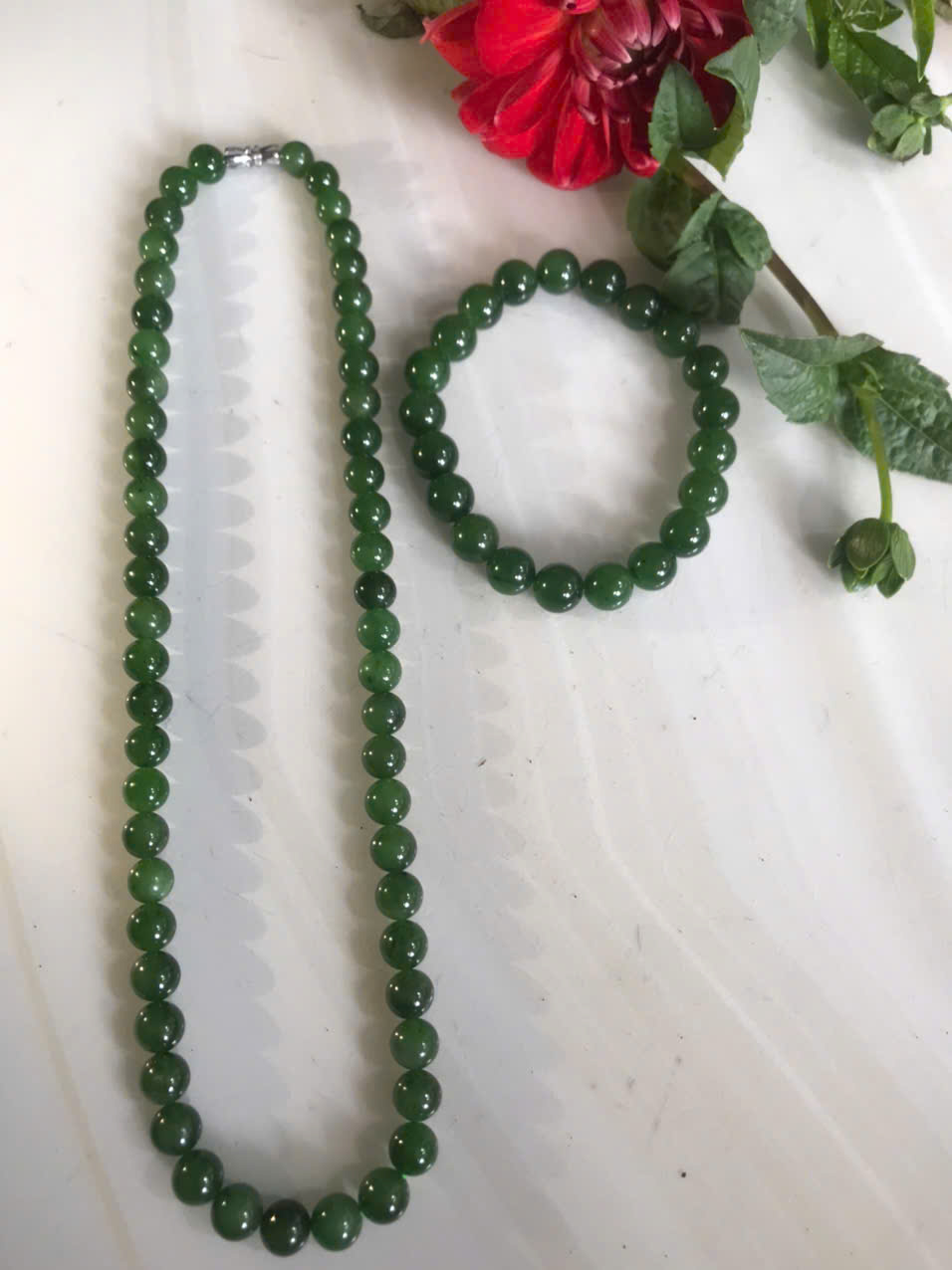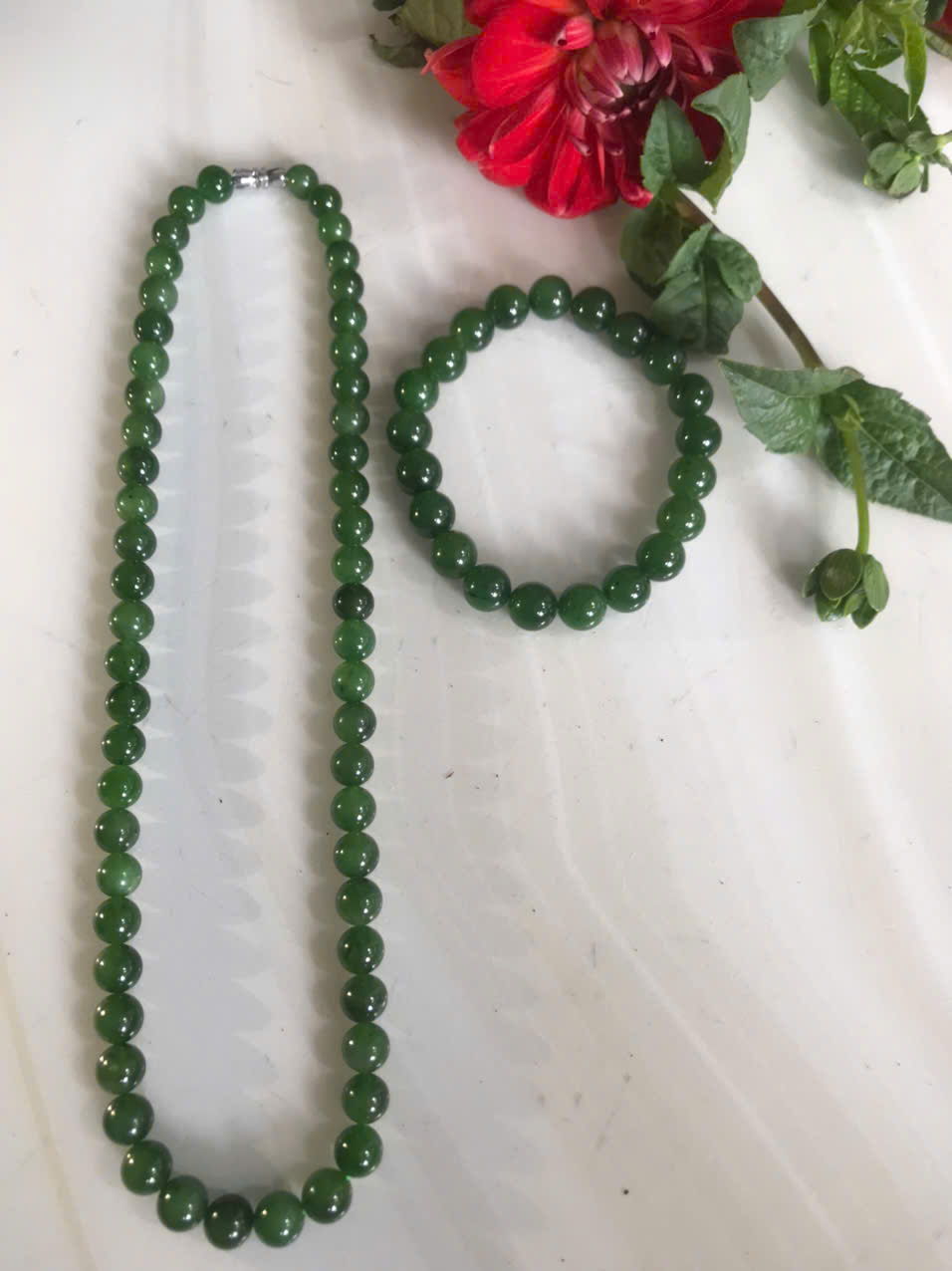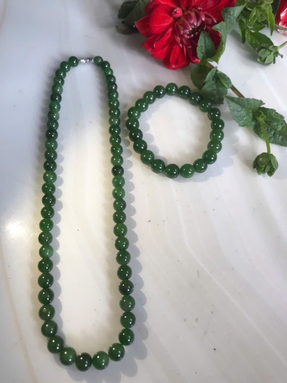 Bộ Vòng Chuỗi Đeo Cổ 8li Và Vòng Tay 9li5 Đá Ngọc Phật Xanh tự nhiên đẹp hay ngọc bích Màu xanh ngọc bích bóng đẹp món quà tặng Mẹ tặng cho mình và người thân nữ đeo đẹp ý nghĩa ạ