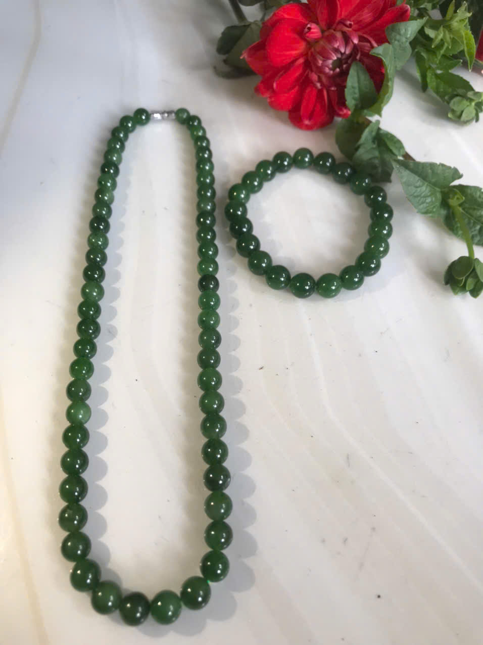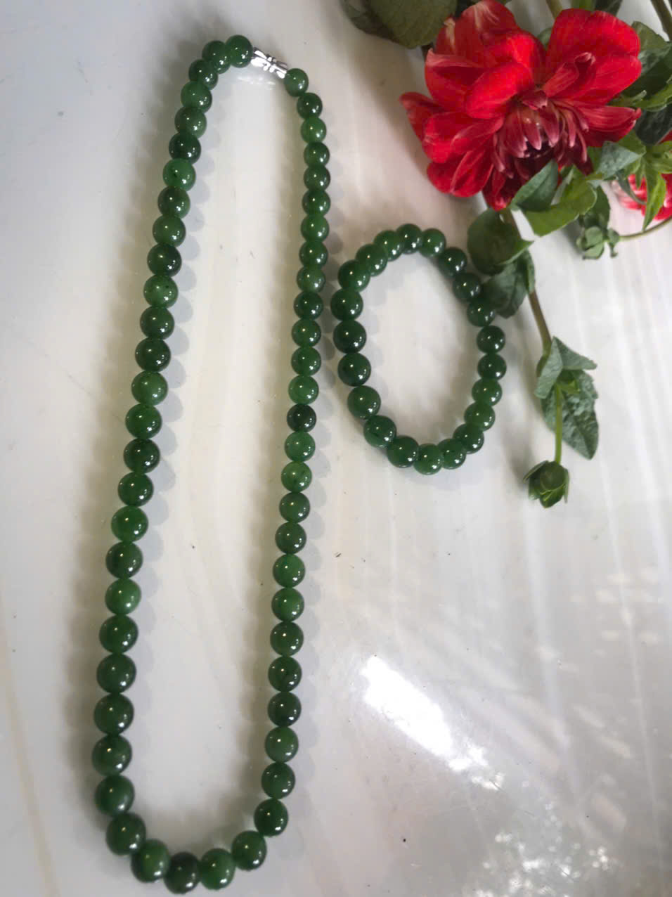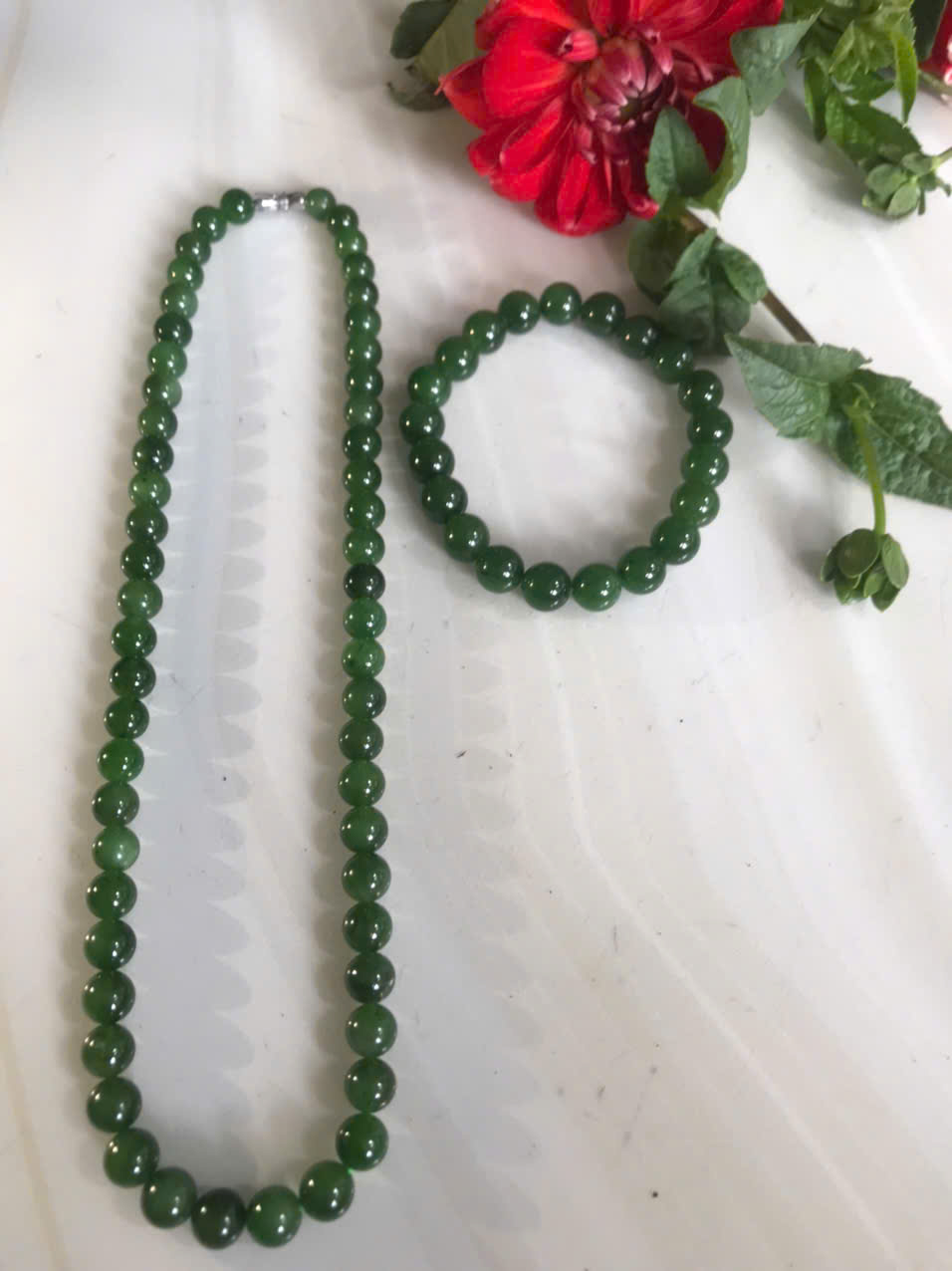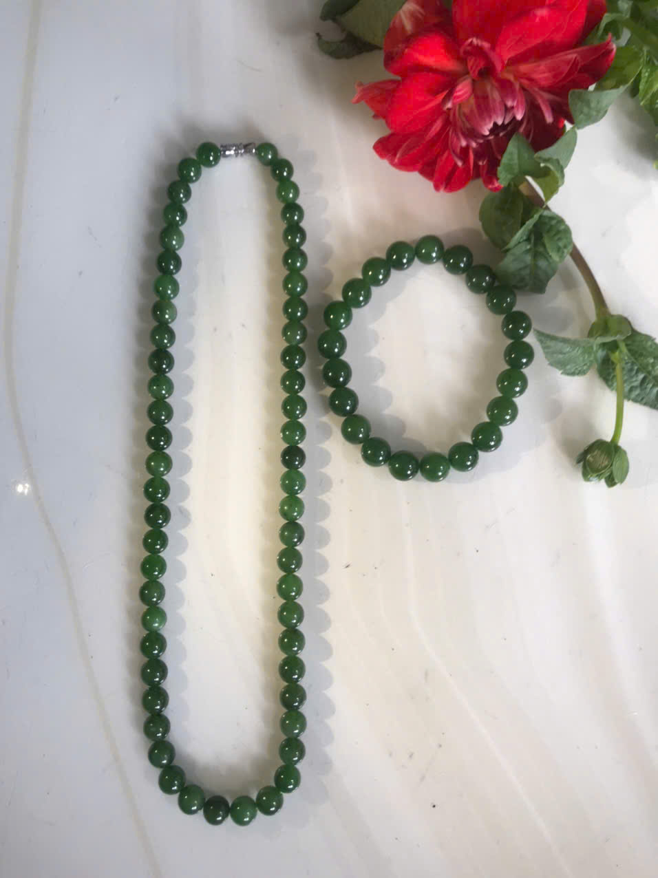 Bộ Vòng Chuỗi Đeo Cổ 8li Và Vòng Tay 9li5 Đá Ngọc Phật Xanh tự nhiên đẹp hay ngọc bích Màu xanh ngọc bích bóng đẹp món quà tặng Mẹ tặng cho mình và người thân nữ đeo đẹp ý nghĩa ạ