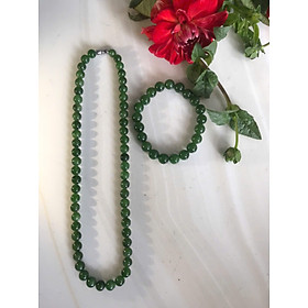 Bộ Vòng Chuỗi Đeo Cổ 8li Và Vòng Tay 9li5 Đá Ngọc Phật Xanh tự nhiên đẹp hay ngọc bích