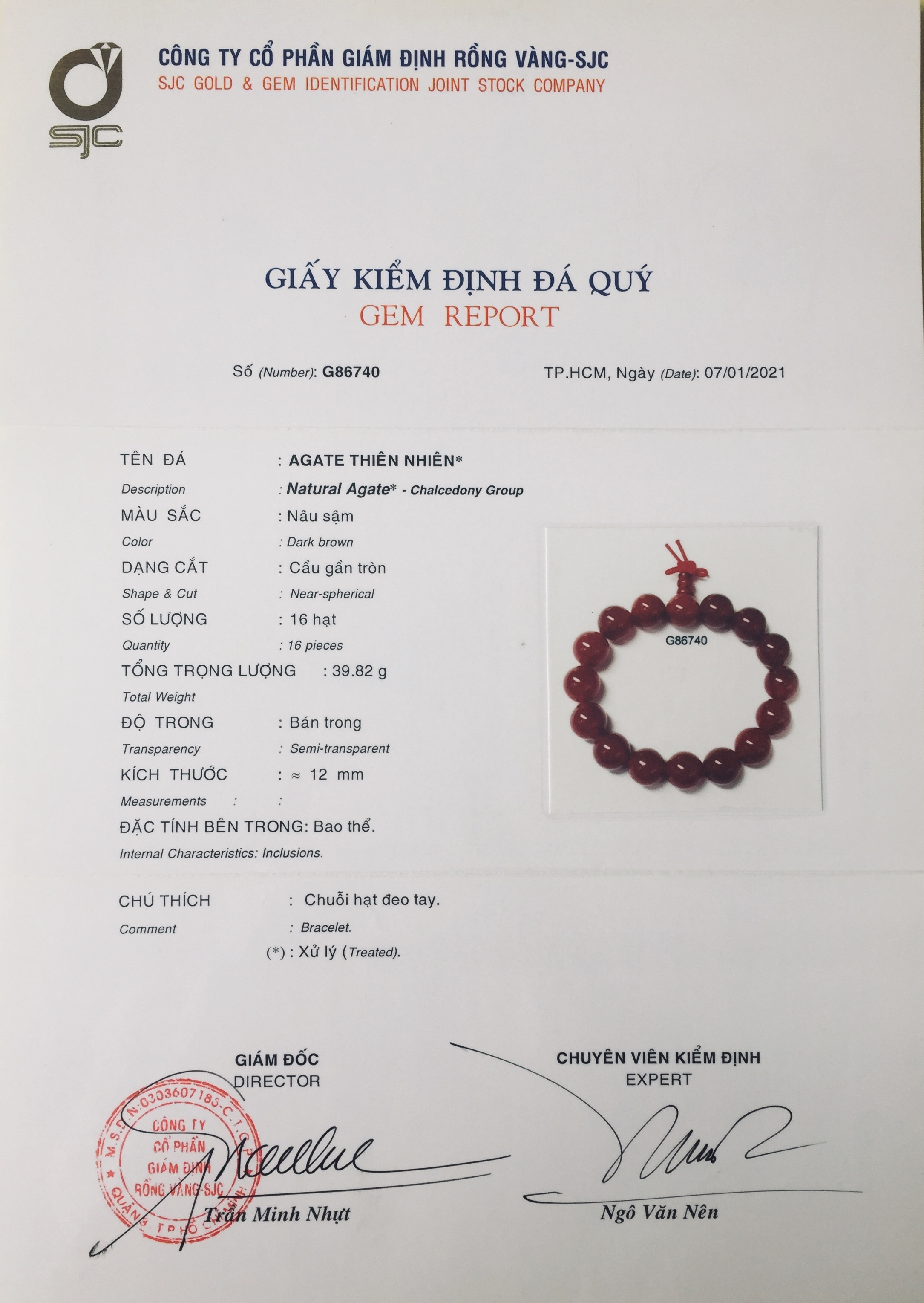 Bộ sản phẩm: 01 Vòng đeo tay + 01 Bản PHOTOCOPY Giấy Giám định SP Mẫu + 01 TÚI NHUNG