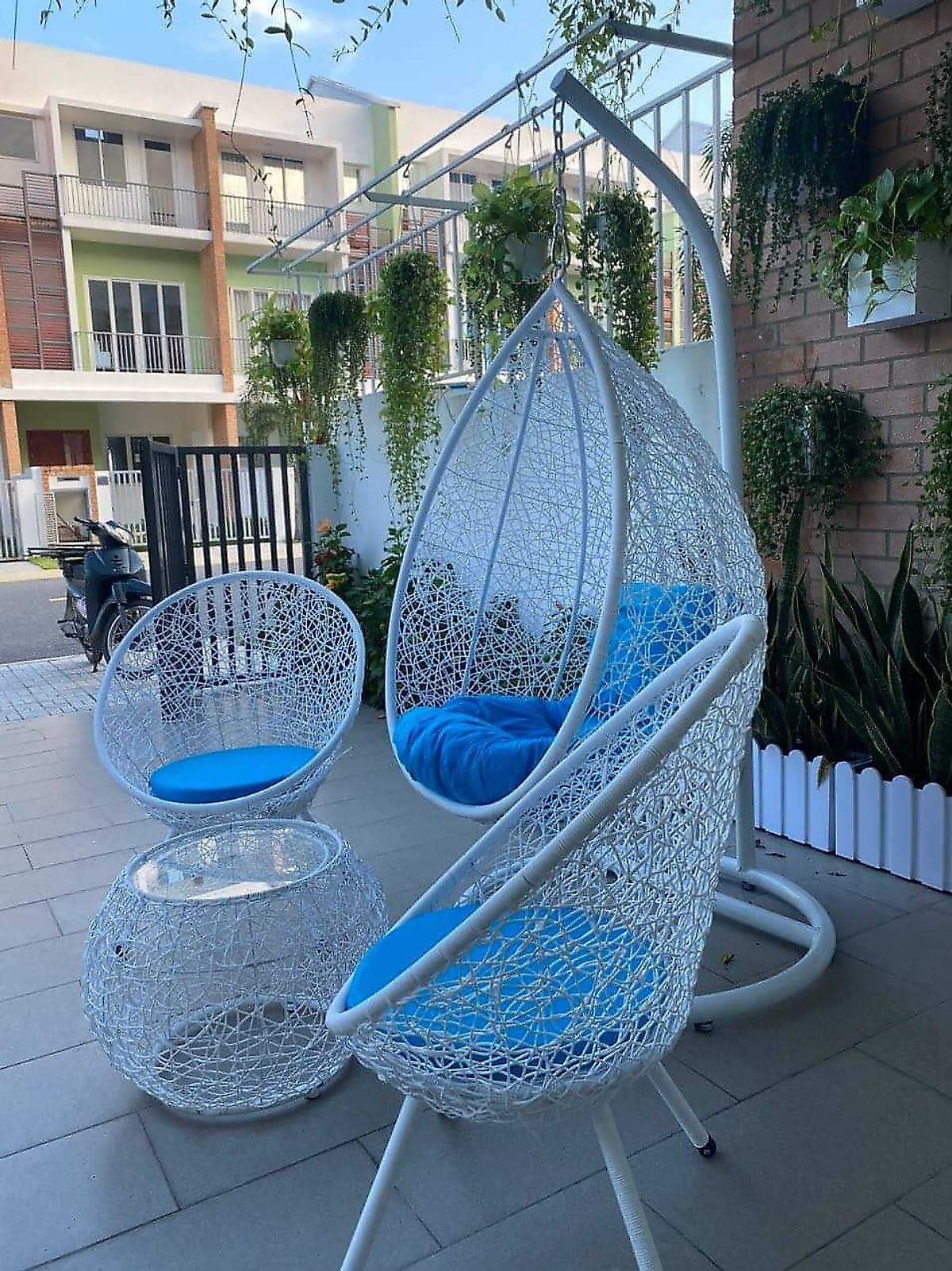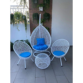 ✨Bộ xích đu sân vườn Tundo đan rối màu trắng đệm nhiều màu