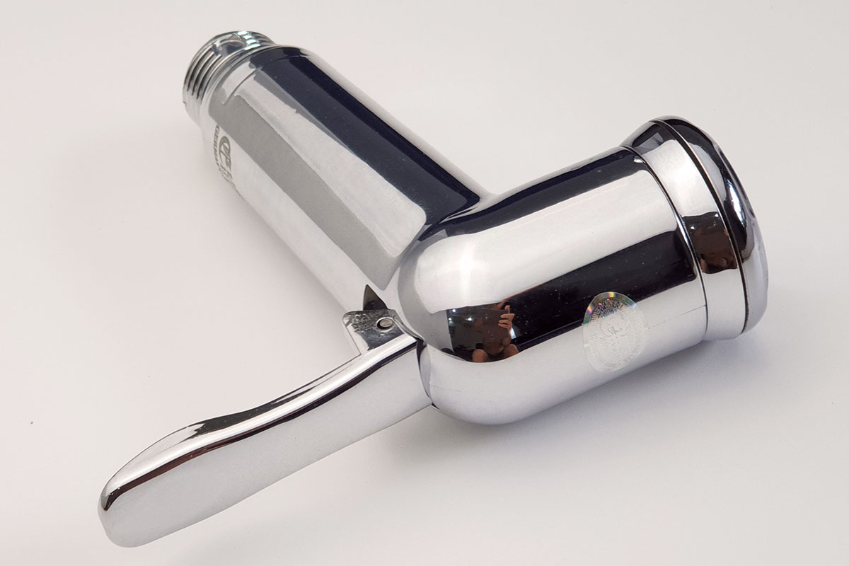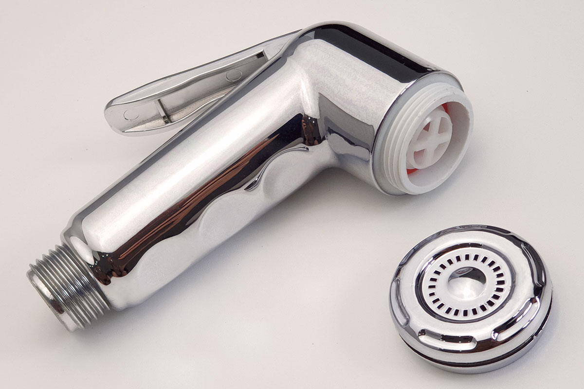Tay xịt được làm từ nhựa ABS mạ Crome sáng bóng, chịu lực cao, an toàn cho sức khỏe người sử dụng