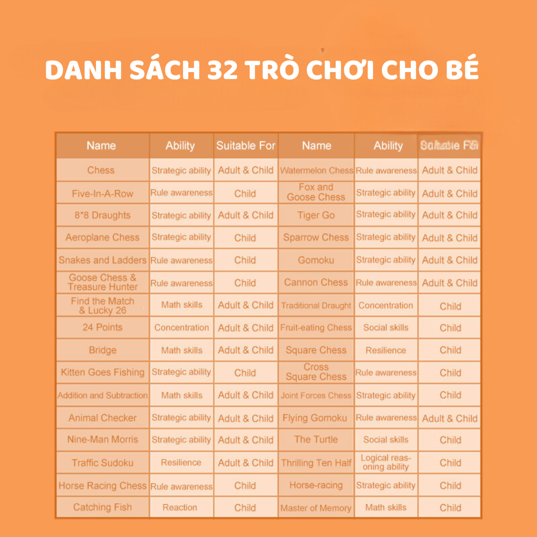 - 32 TRÒ CHƠI SÁNG TẠO, GIỮ BÉ LUÔN BẬN RỘN VÀ VUI VẺ- Đa dạng trò chơi trong một bộ: Bộ đồ chơi có đến 32 trò chơi thú vị, đảm bảo mang lại sự mới mẻ và hấp dẫn cho bé mỗi ngày, giúp con vừa chơi vừa học mà không lo nhàm chán.