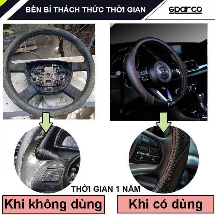 Bọc vô lăng dành cho Sparco có kích cỡ phù hợp với vô lăng xe 4 chỗ 5 chỗ và 7 chỗ, đường kính vô lăng là 37 38cm, chất liệu cấu thành toàn bộ
