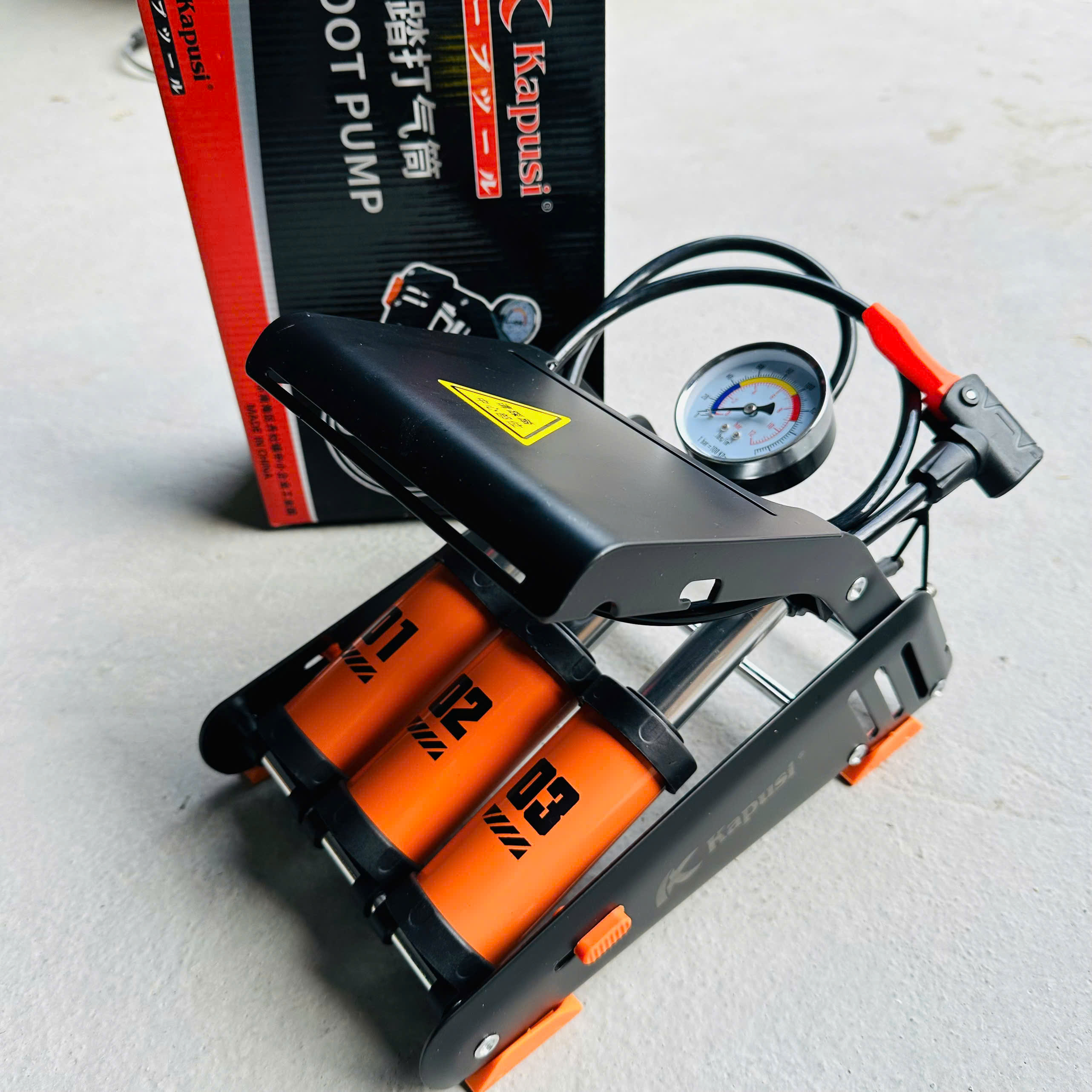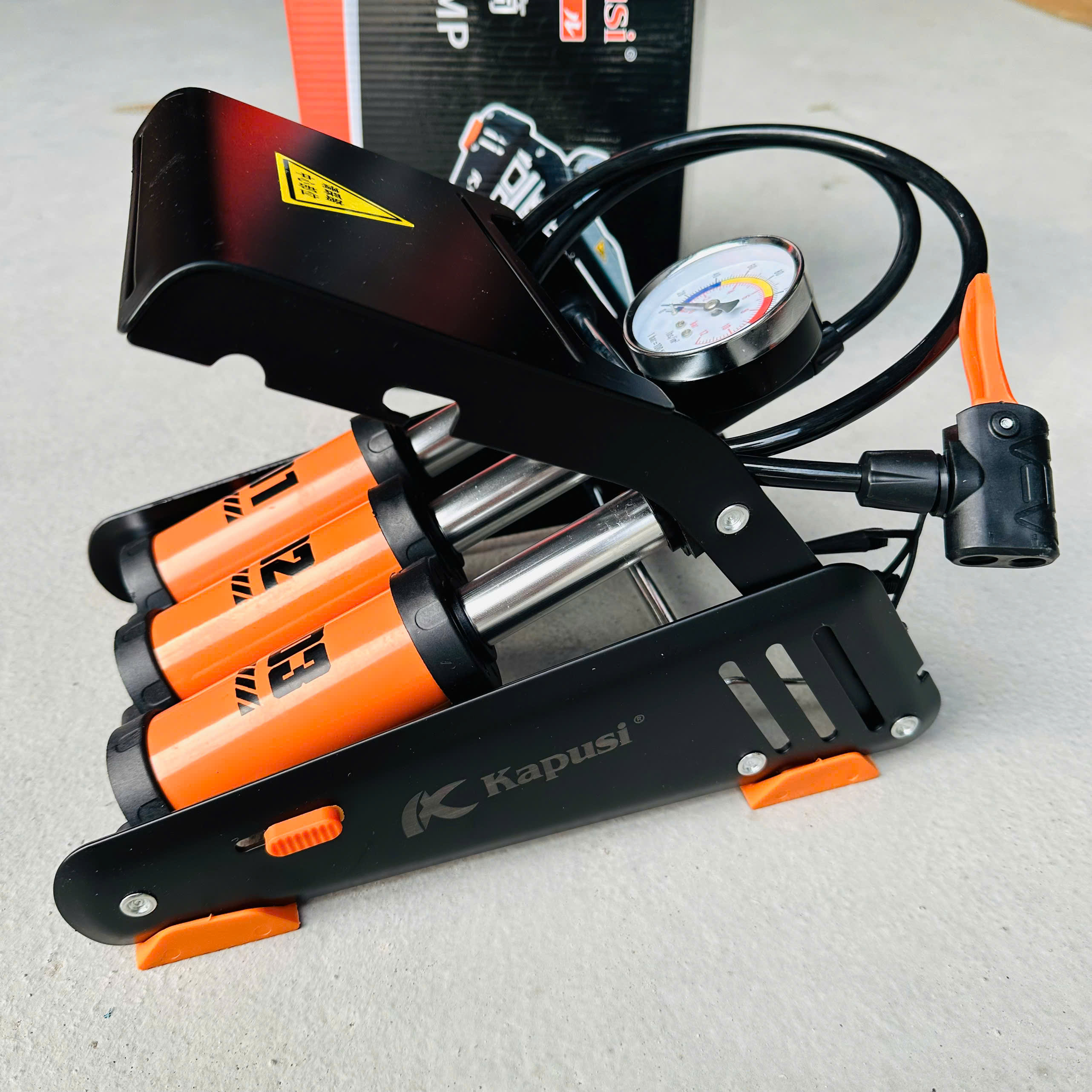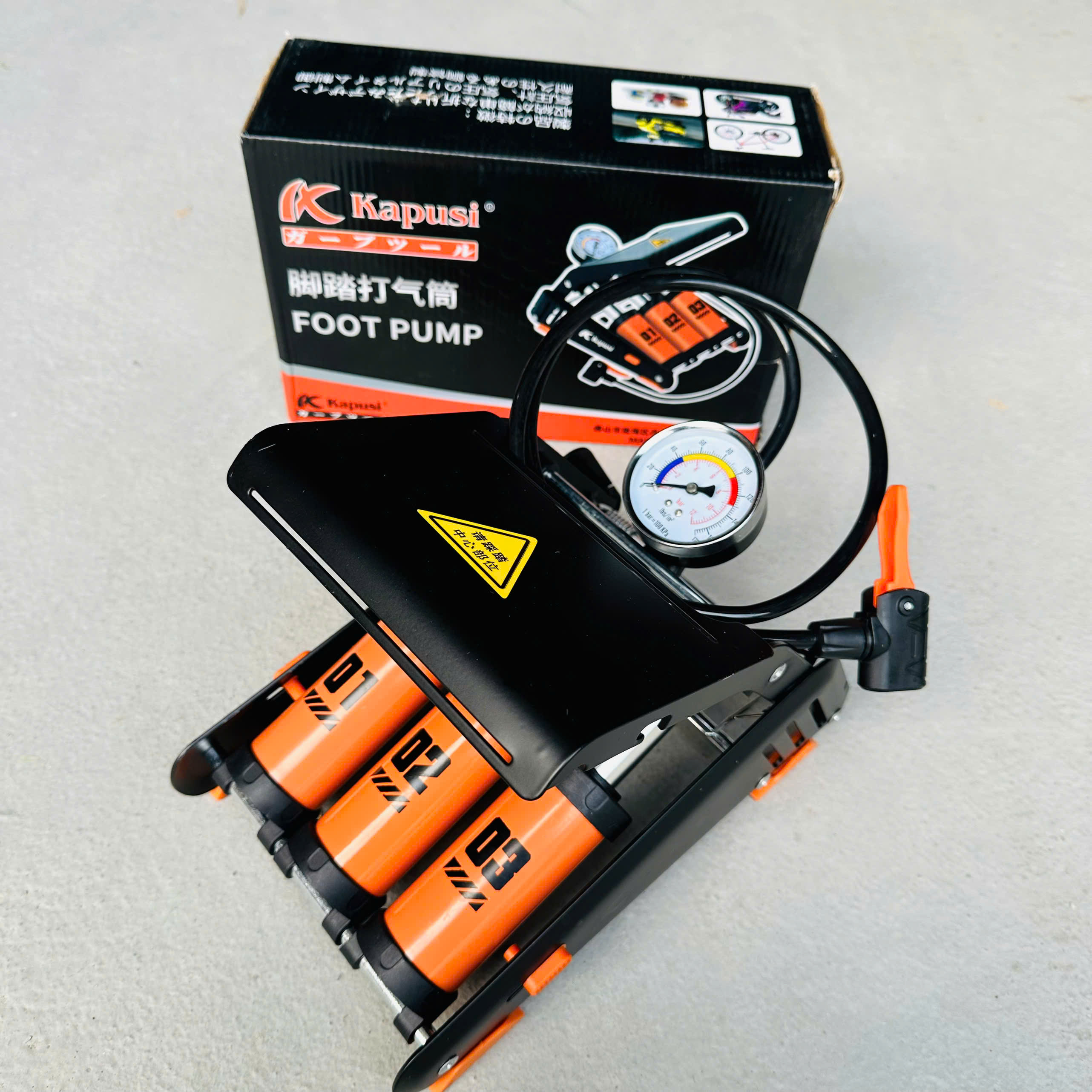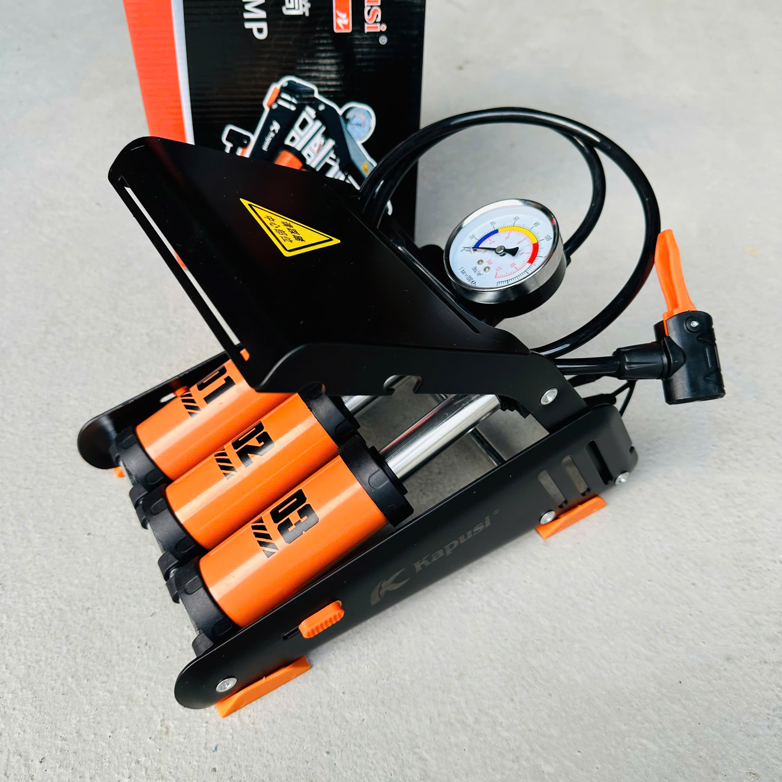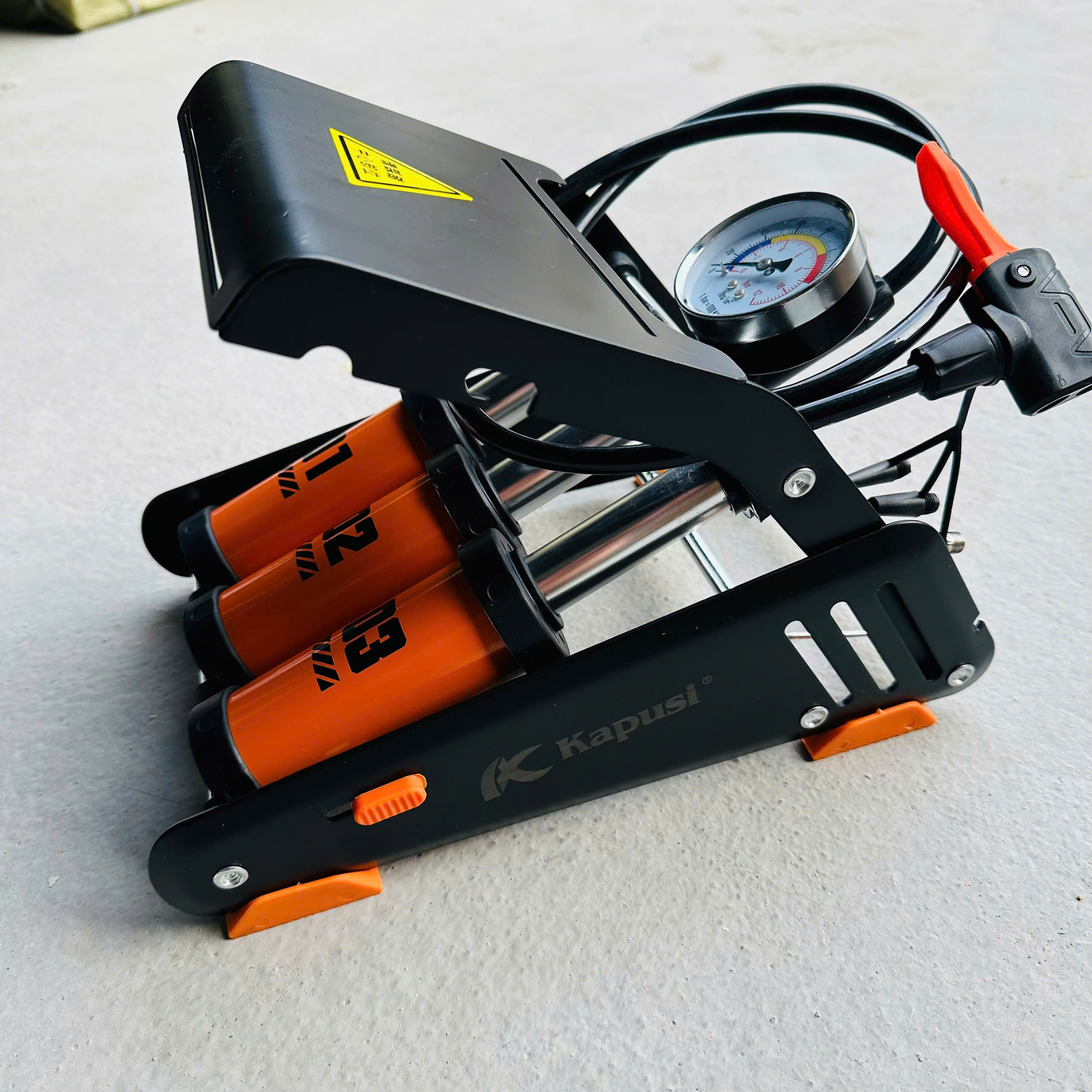 ✨Bơm đạp chân xe đạp xe máy KAPUSI 3 ống xilanh bền đẹp - màu cam đen