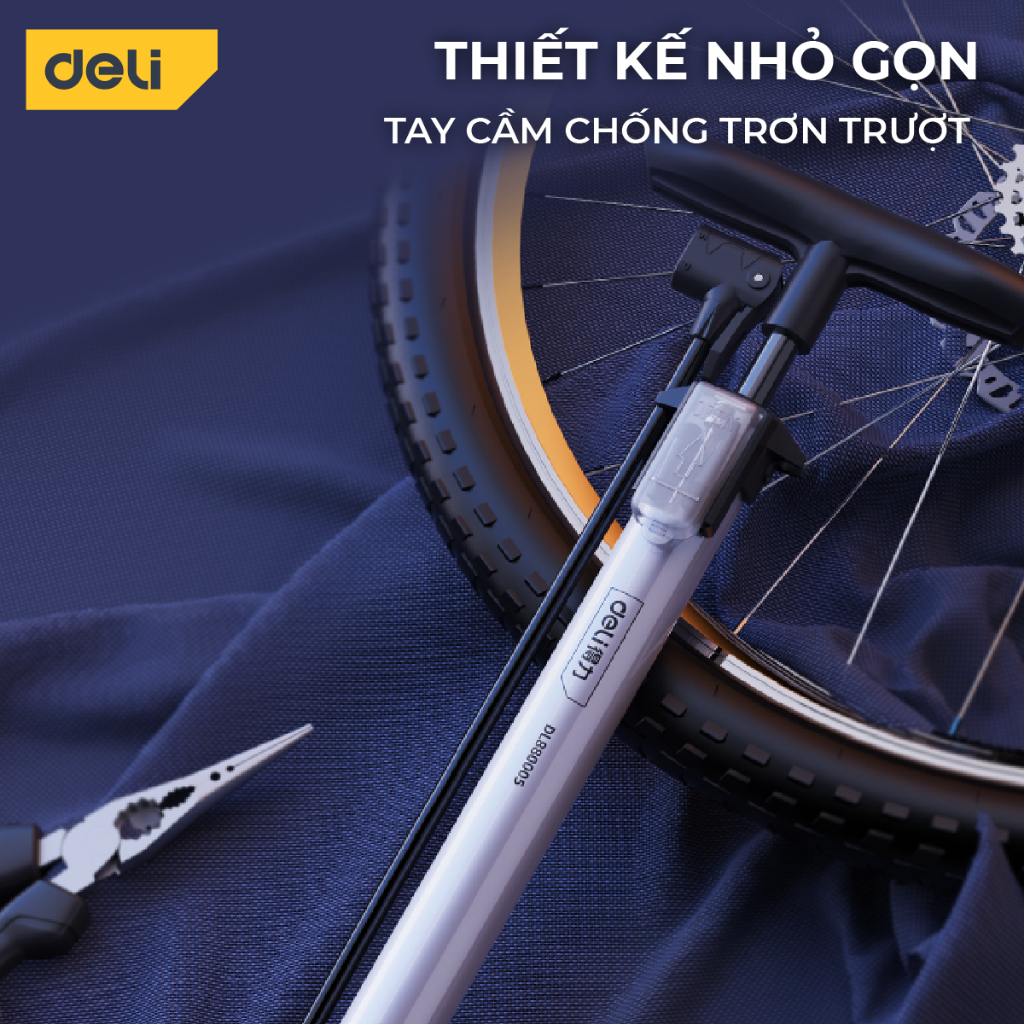 BƠM XE ĐẠP XE MÁY TÍCH HỢP ĐỒNG HỒ ÁP SUẤT DELI TOOLS