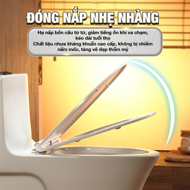 - Sử dụng nắp rơi êm, rơi từ từ hạn chế tiếng ồn cũng như tránh va đập mạnh khi nắp tiếp xúc với bề mặt cầu dễ gây nứt bể bàn cầu, nắp ngồi với chất liệu dày, lớp men nano kim cương được nung ở nhiệt độ cao 1280-1380C tạo độ bền cao