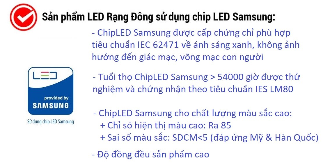 Không chứa thuỷ ngân, hoá chất độc hại, không phát ra tia tử ngoại, thân thiện với môi trường.